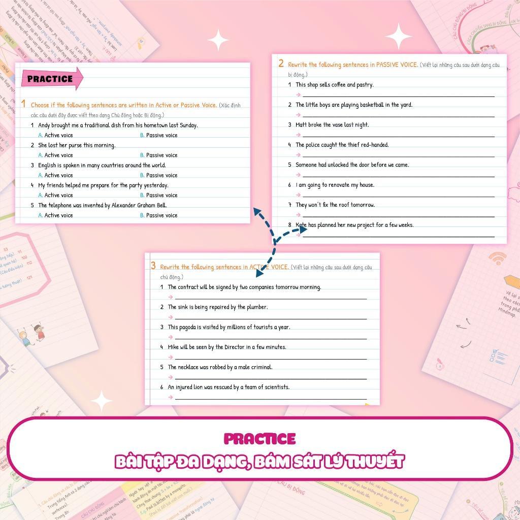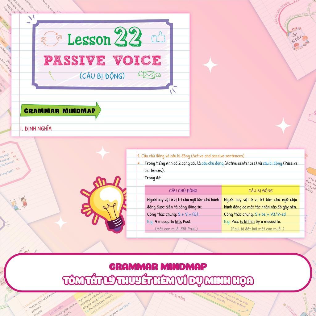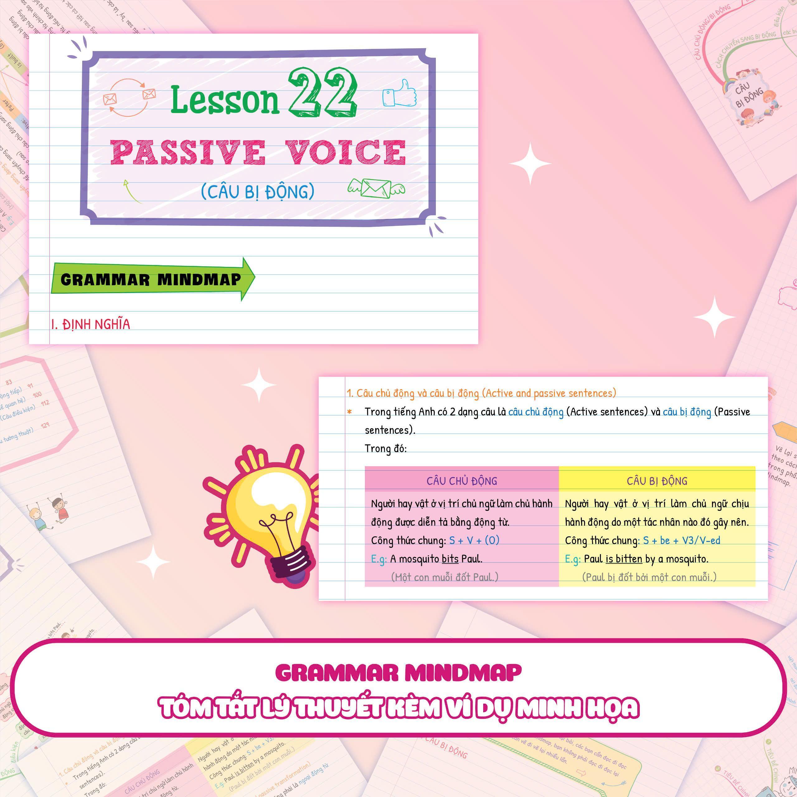 - Grammar Mindmap Phần lý thuyết ngắn gọn, giúp các em học ngữ pháp nền tảng qua Mindmap, có kèm diễn giải lý thuyết và ví dụ cụ thể