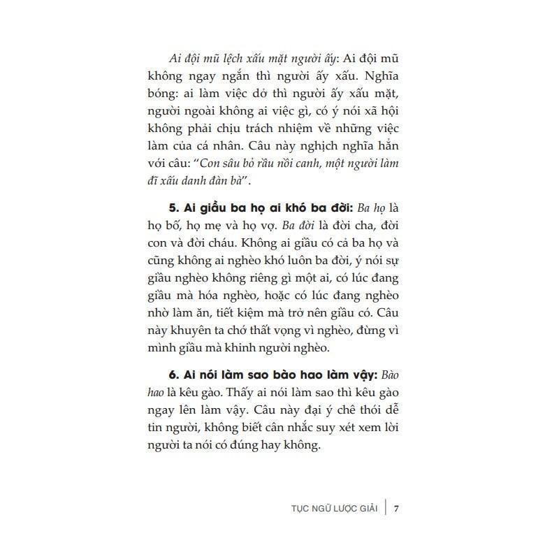 Dĩ nhiên, sách Tục ngữ lược giải này chỉ giải thích sơ lược đại ý mà thôi, không đi sâu vào lai lịch hay là điển cố các tục ngữ. Và cũng không thể giải thích hết tất cả các tục ngữ Việt Nam, mà chỉ giải nghĩa những câu cần phải giải nghĩa, và đã tìm thấy nghĩa.
