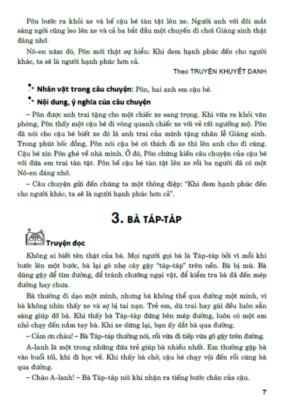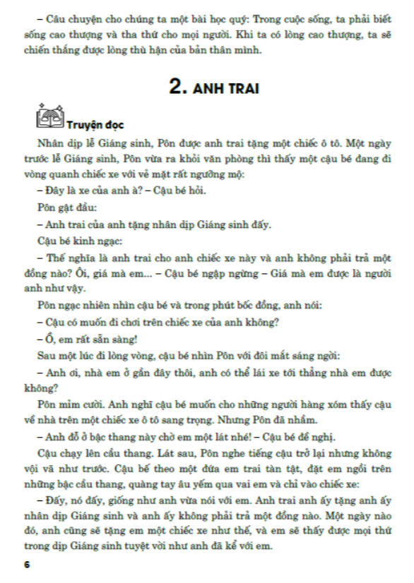 Những truyện được sưu tầm, tuyển chọn đều chứa đựng bài học giáo dục phù hợp với lứa tuổi của các em. Đó là bài học về tình yêu quê hương đất nước, tình làng nghĩa xóm, tình cảm gia đình, tình thầy trò, bè bạn, Nhân vật trong truyện có thể là người hoặc cây cối, con vật, các hiện tượng thiên nhiên được nhân hoá. Qua hệ thống nhân vật và mối quan hệ giữa các nhân vật, bài học giáo dục sâu sắc từ câu chuyện không đến với các em một cách khô khan, gượng ép, cứng nhắc mà dần thấm vào tâm hồn trẻ thơ của các em.