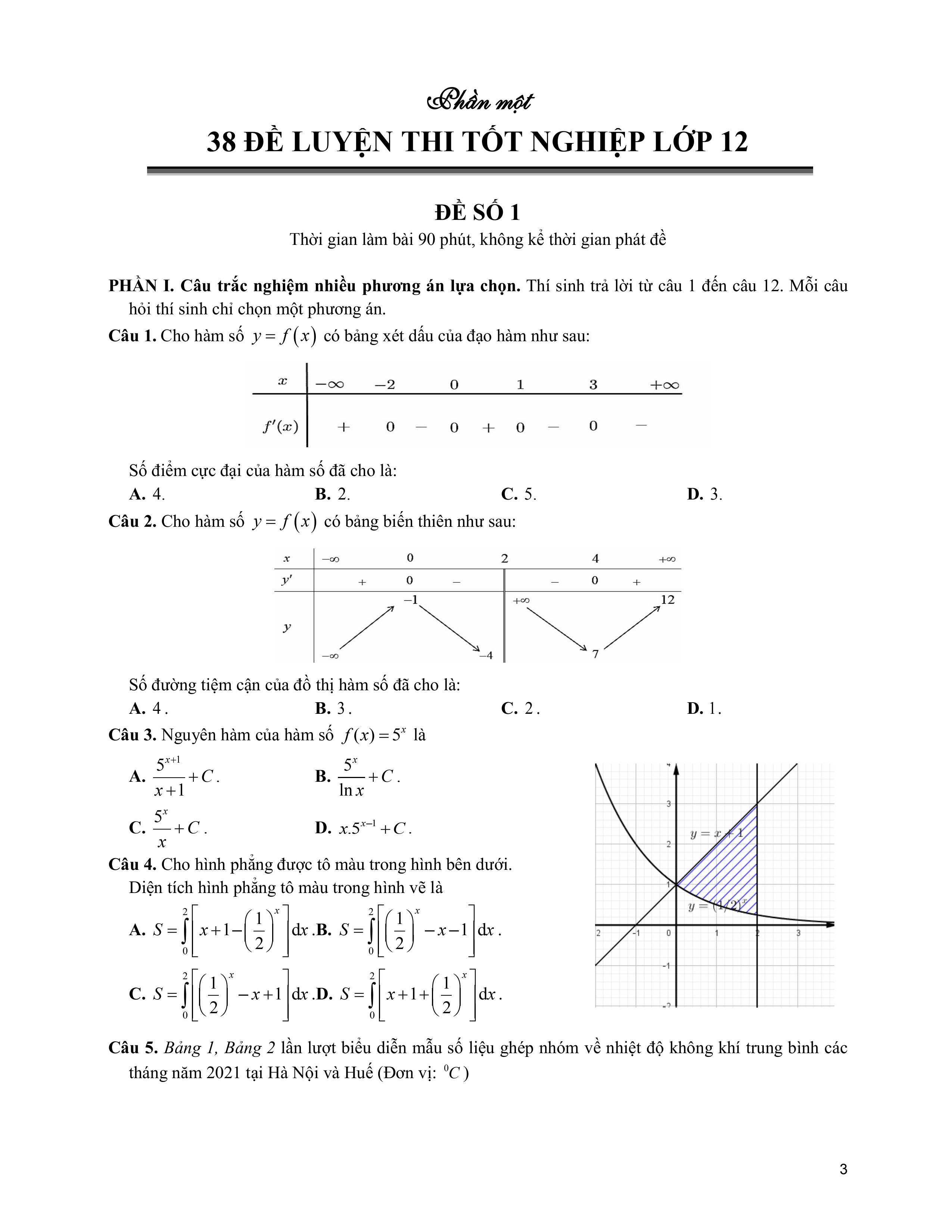 Nhằm tạo điều kiện cho Học sinh có nguồn tại liệu ôn tập cũng như Giáo viên có nguồn tài liệu tham khảo. Chúng tôi biên soạn cuốn sách TUYỂN TẬP 38 ĐỀ ÔN THI TỐT NGHIỆP LỚP 12 MÔN TOÁN. Cấu trúc cuốn sách gồm 38 đề ôn và sau đó là đáp án và lời giải 38 đề. Mỗi đề gồm có 3 phần theo đúng cấu trúc mới của BGD: