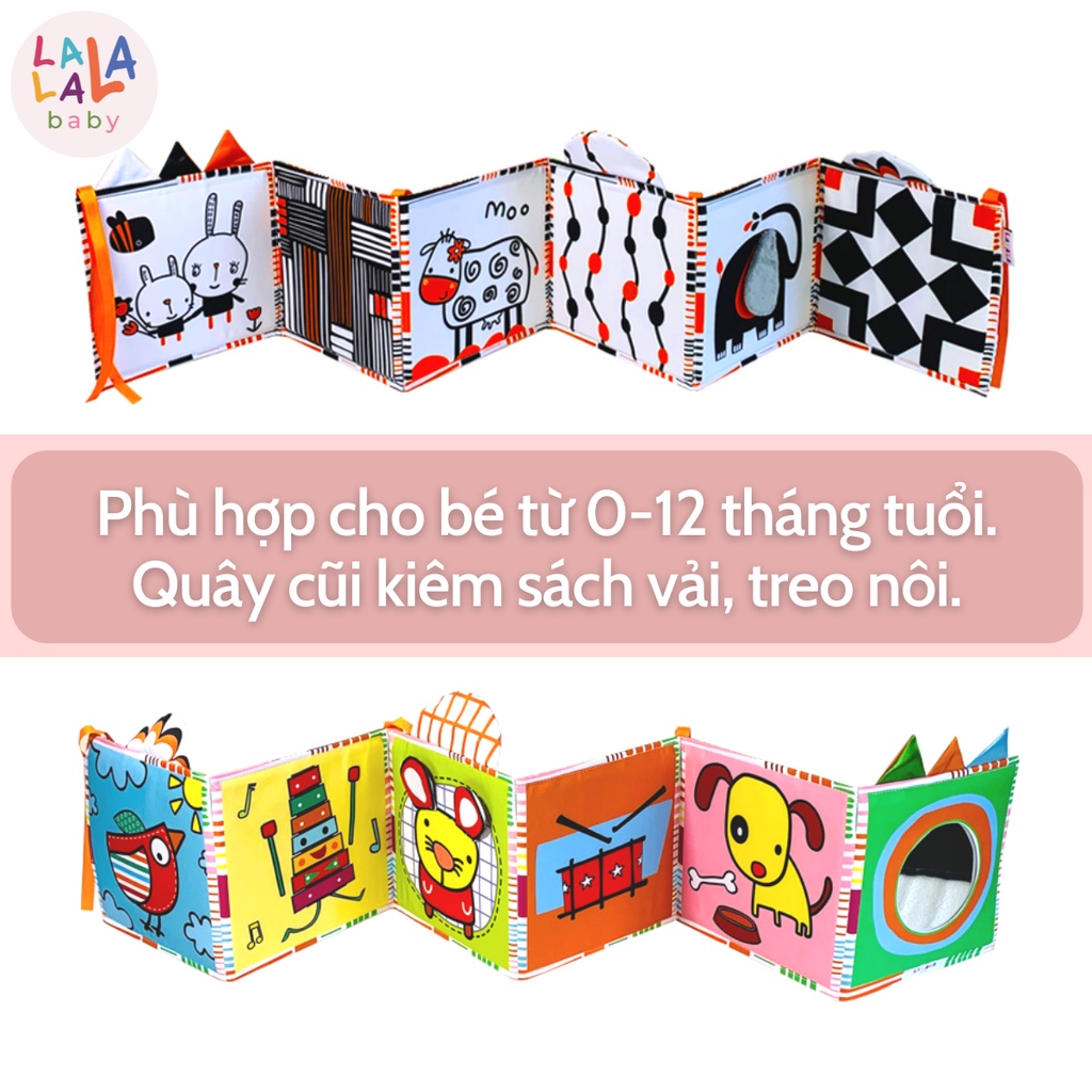 Tranh Vải Kích Thích Thị Giác Cho Bé Sơ Sinh, Phát Triển Não Bộ Tummy Time - Lalala Baby Sách vải lật mở đa tương tác Lalala baby, made in Việt Nam - Chất