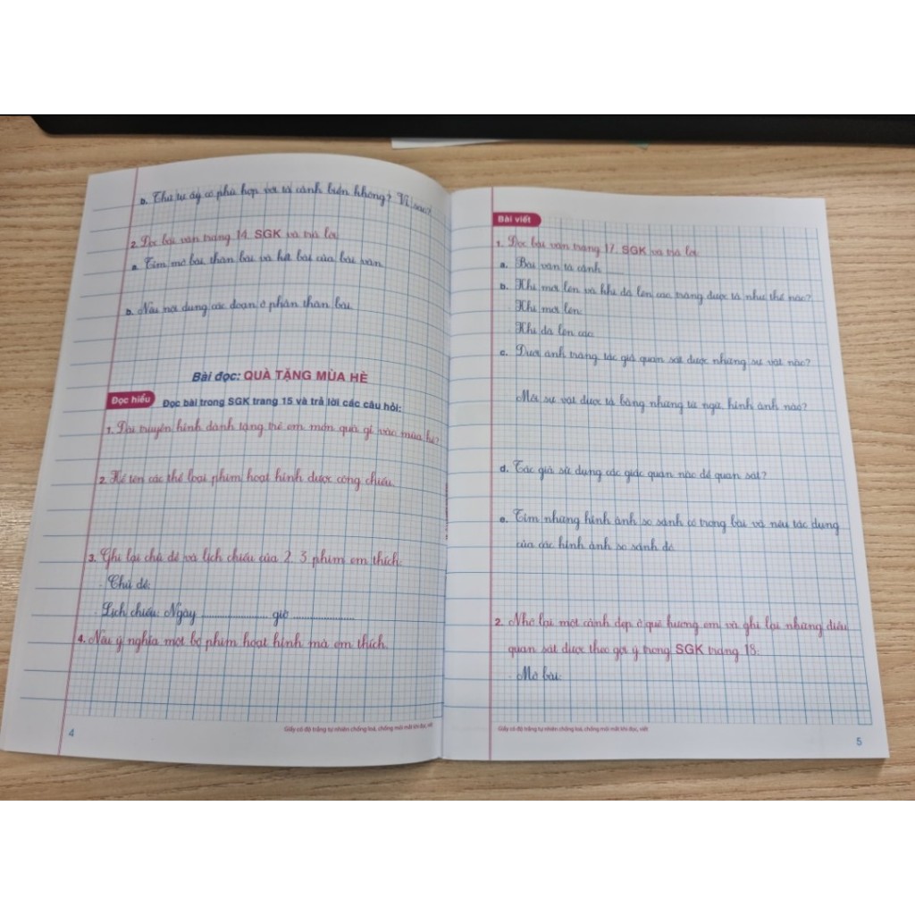 Với 2 bài học, mỗi tuần gồm các câu hỏi và bài tập được trình bày trên giấy ô li bằng kiểu chữ tiểu học hiện hành sẽ giúp các em vừa rèn được kĩ năng trả lời câu hỏi vừa rèn viết chữ được sạch, đẹp, trình bày rõ ràng.