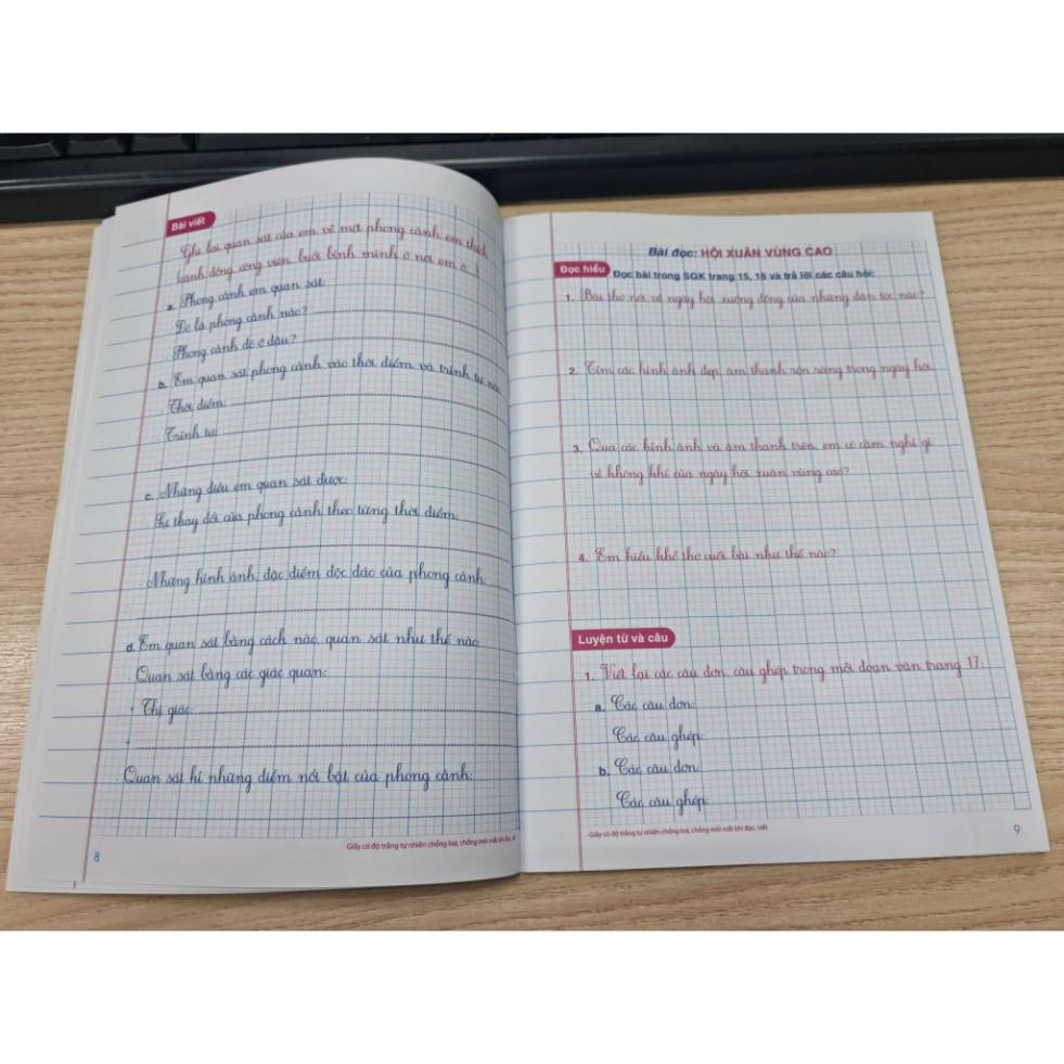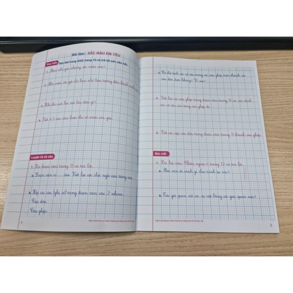 tVới 2 bài học, mỗi tuần gồm các câu hỏi và bài tập được trình bày trên giấy ô li bằng kiểu chữ tiểu học hiện hành sẽ giúp các em vừa rèn được kĩ năng trả lời câu hỏi vừa rèn viết chữ được sạch, đẹp, trình bày rõ ràng.