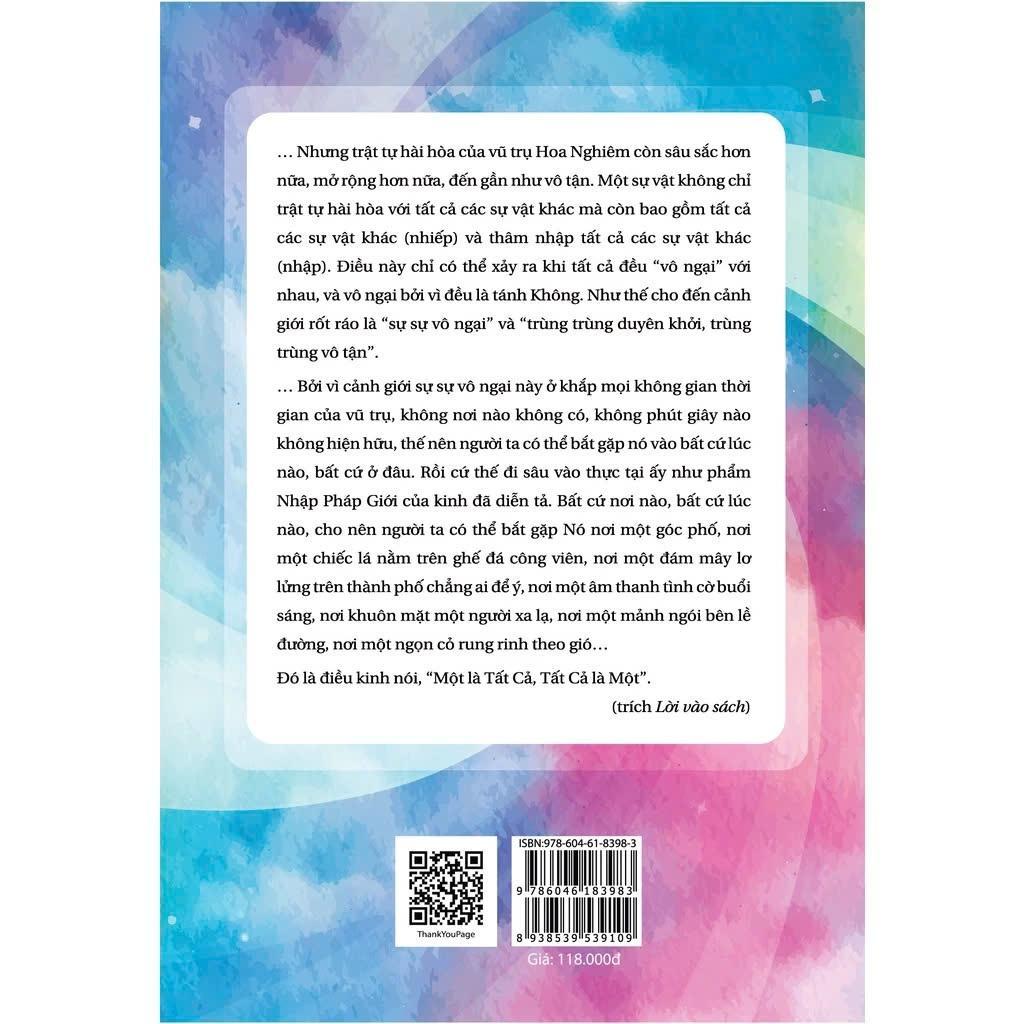 Nhưng trật tự hài hòa của vũ trụ Hoa Nghiêm còn sâu sắc hơn nữa, mở rộng hơn nữa, đến gần như vô tận. Một sự vật không chỉ trật tự hài hòa với tất cả các sự vật khác mà còn bao gồm tất cả các sự vật khác (nhiếp) và thâm nhập tất cả các sự vật khác (nhập). Điều này chỉ có thể xảy ra khi tất cả đều “vô ngại” với nhau, và vô ngại bởi vì đều là tánh Không. Như thế cho đến cảnh giới rốt ráo là “sự sự vô ngại” và “trùng trùng duyên khởi, trùng trùng vô tận”.
