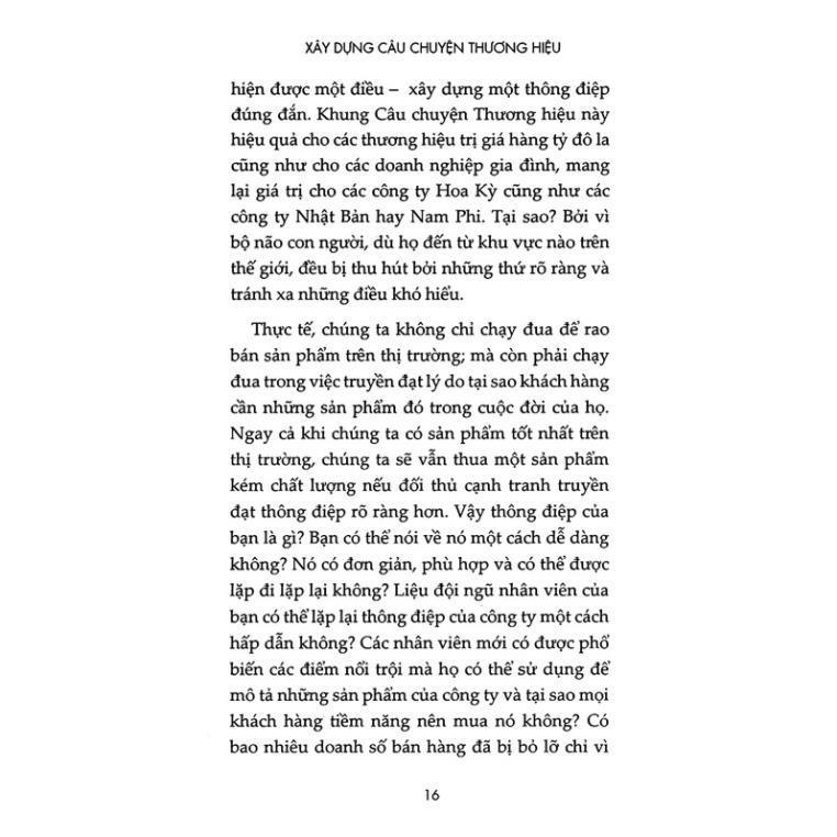 Hãy thay đổi cách giao tiếp với công chúng, với những vị khách hàng tiềm năng của bạn! Donald Miller, một chuyên gia xây dựng thương hiệu, giám đốc điều hành của StoryBrand đã lý giải được nguyên nhân thất bại của các doanh nghiệp. Hãy quên đi các chiến dịch marketing tiền tỷ với những mục tiêu “trên trời”, và tập trung vào cải thiện ngay lập tức cách mà bạn đang “trò chuyện” với khách hàng! Miller tạo ra một khung làm việc chuẩn xác, cơ bản nhưng hiệu quả, để trợ giúp hàng ngàn công ty tiếp cận với khách hàng tốt hơn và thu được kết quả thực tiễn.