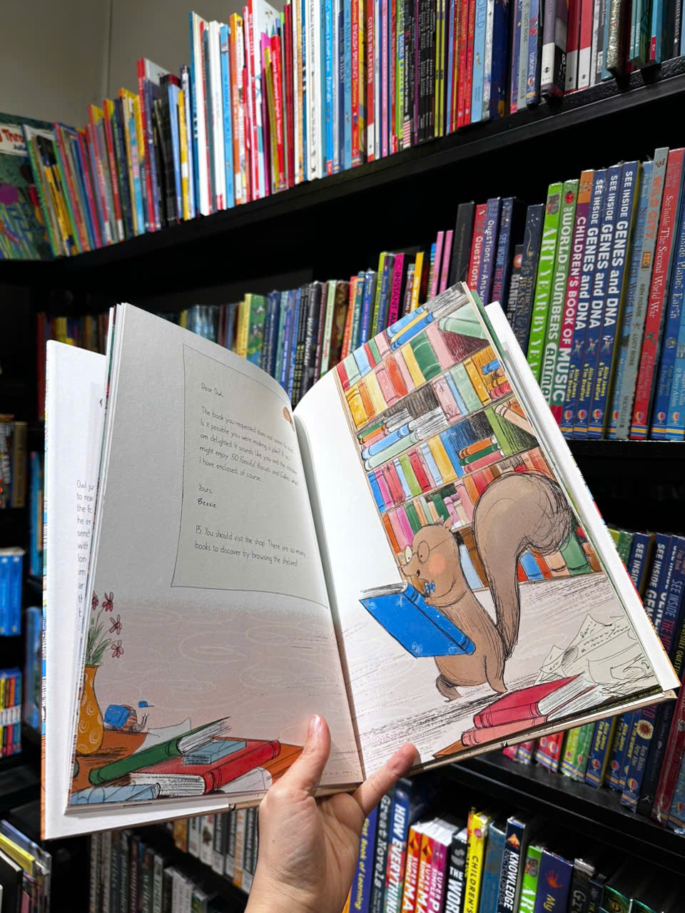 Owl just wants some peace and quiet to read his books—alone. But when the forest youngsters ruffle his feathers, he enlists the local bookshop owner to send him handpicked books to help cope with the chaos and the mess. It’s not long before Owl discovers Squirrel and learns that just as important as solitude are companionship and community. Told entirely in letters, this charming picture book celebrates books and bookshops, letter writing, and love.