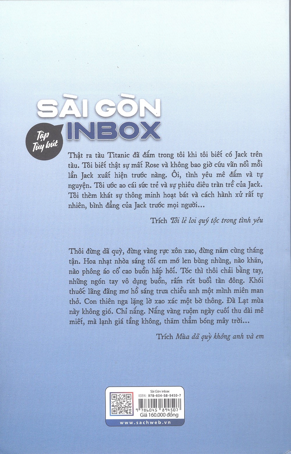Để có một ngày, inbox lẻ mà chẵn bỗng qua đời như “con dế buồn tự tử giữa đêm sương”. Chiếc lá cuối cùng rơi. Người nghệ sĩ sắp đặt không còn lòng kiên nhẫn. Tương lai bỗng trở về tương lai của những năm tháng học miệt mài như điên. Còn cái gì phía trước không. Còn. Nàng chờ inbox sống lại. Tự bao giờ, inbox đã là một điều gì đó rất hiển nhiên trong cuộc sống đang đứng trên đỉnh đồi của nàng. Nhưng có điều nàng cố tình không biết, sự thờ ơ và kiêu hãnh của nàng đã giết chết inbox. Đêm mưa, nàng nghe Trịnh Nam Sơn hát. Lời yêu thương em nỡ vô tình, quên thật sao. Người ơi dĩ vãng đã xa, em có hay rằng tôi còn thương…