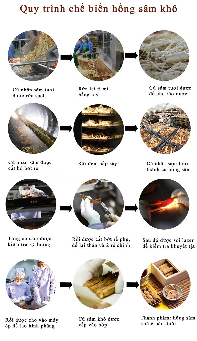 - Hồng sâm củ khô 6 năm tuổi truyền thống.