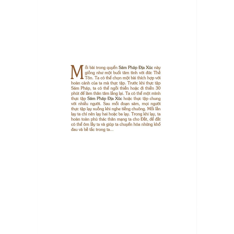 Mỗi bài trong quyển Sám Pháp Địa Xúc này giống như một buổi tâm tình với đức Thế Tôn. Ta có thể chọn một bài thích hợp với hoàn cảnh của ta mà thực tập. Trước khi thực tập Sám Pháp, ta có thể ngồi thi...