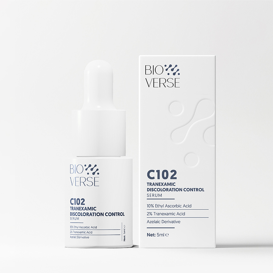 GIỚI THIỆU: Tinh chất C102 Tranexamic Discoloration Control Serum là sản phẩm thúc đẩy làm mờ các vết thâm mụn, cải thiện da đều màu và sáng mịn. Chứa 10% Ethyl Ascorbic Acid giảm quá trình sản sinh Melanin quá mức dưới da gây nên vết thâm sạm kết hợp cùng 2% Tranexamic Acid & 3% phái sinh Azelaic để tăng cường làm trắng sáng da, giảm vết thâm đỏ trên da nhanh chóng, cải thiện kết cấu da đàn hồi và hạn chế lão hóa.