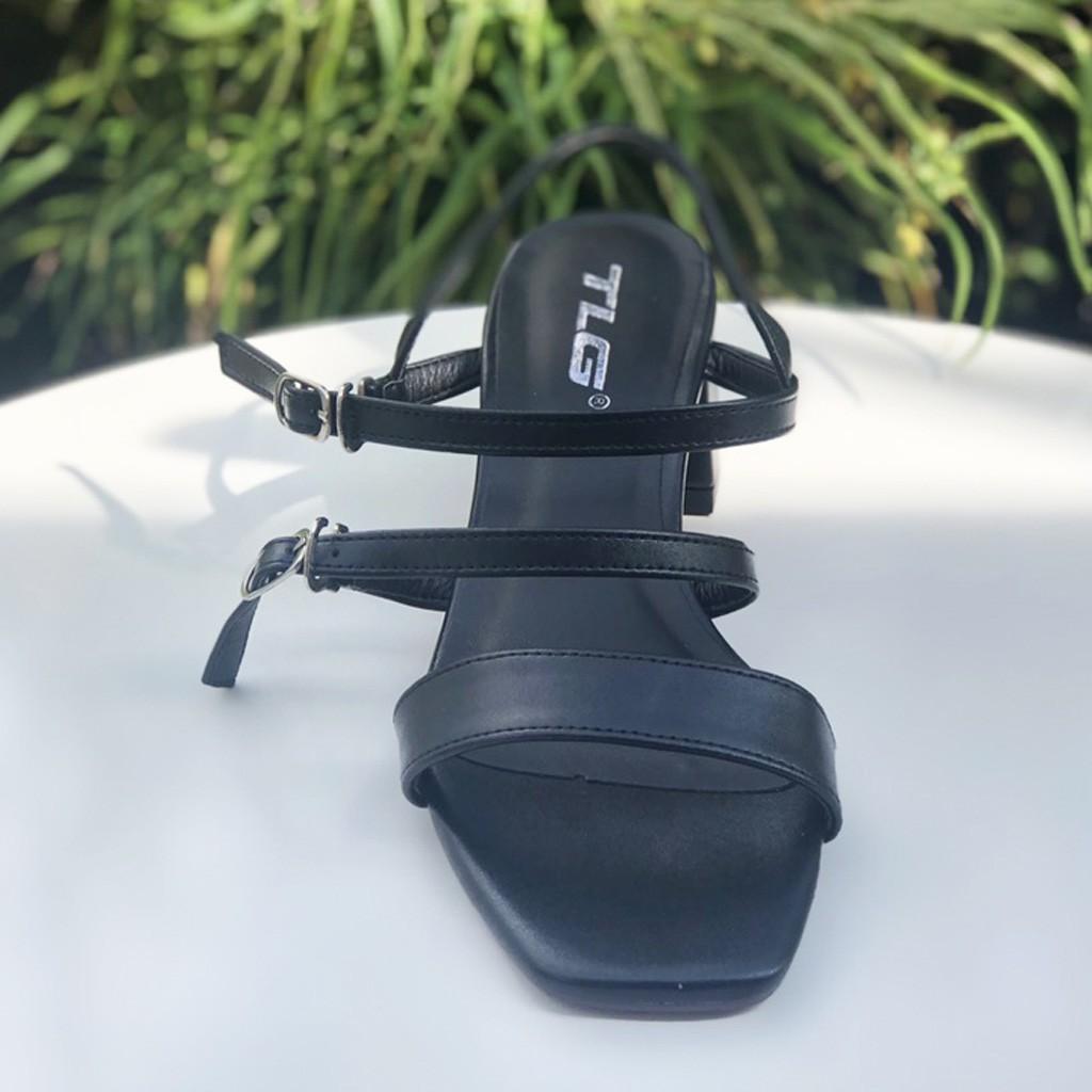 HE 37 Mô tả sản phẩm sandal nữ màu đen 1. Thiết kế tổng thể - Dáng sandal hở mũi, quai ngang kết hợp quai hậu. - Gam màu đen trơn, sang trọng và dễ