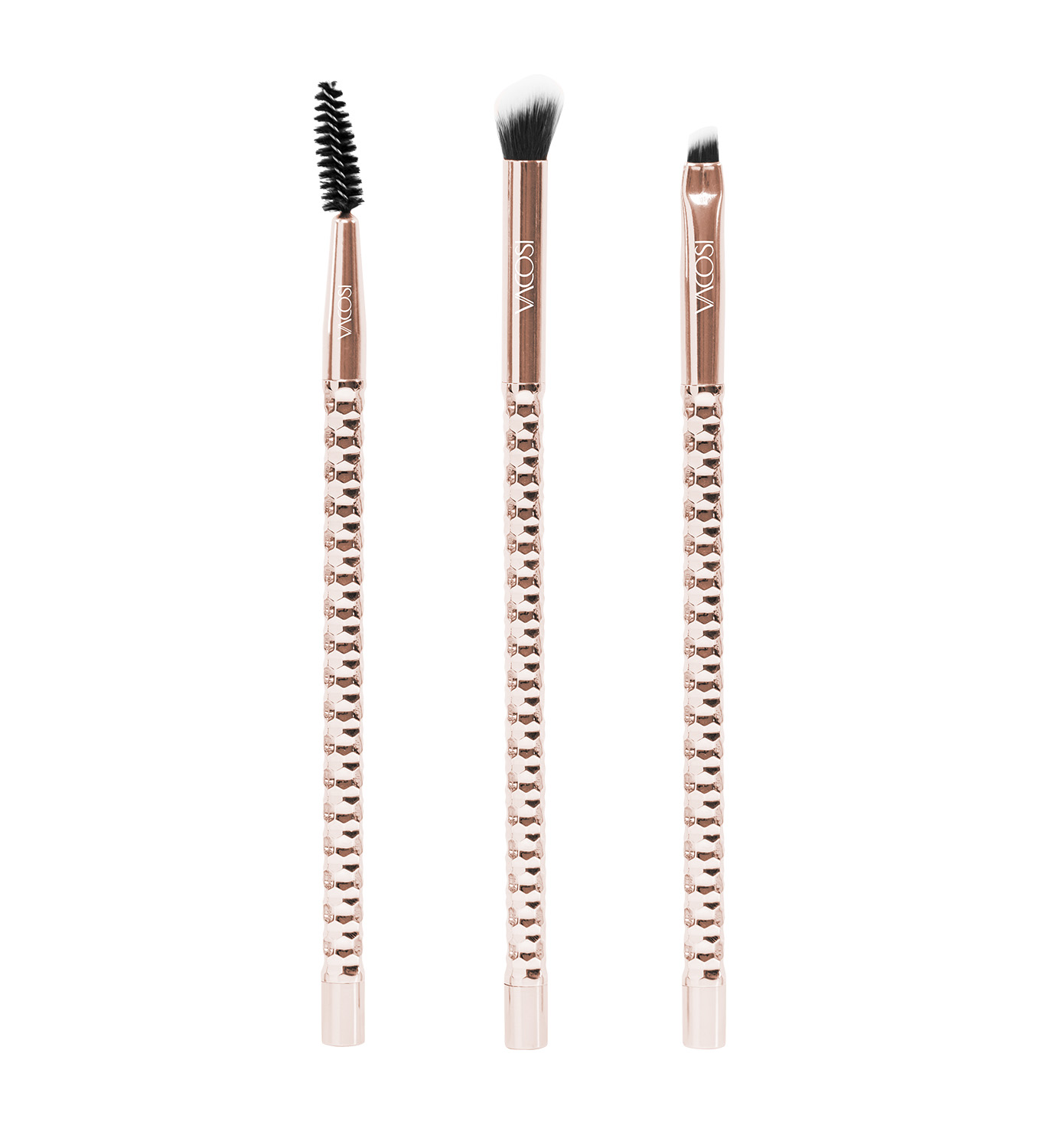 Bộ 3 cọ chuyên nghiệp dành makeup mắt, cọ viền mí ngắn, cọ tán smokey với đầu vát chóp cho hốc mắt sâu, và cọ bắt sáng đầu bung dẹt, mang lại vẻ đẹp mắt ấn tượng và sắc sảo.