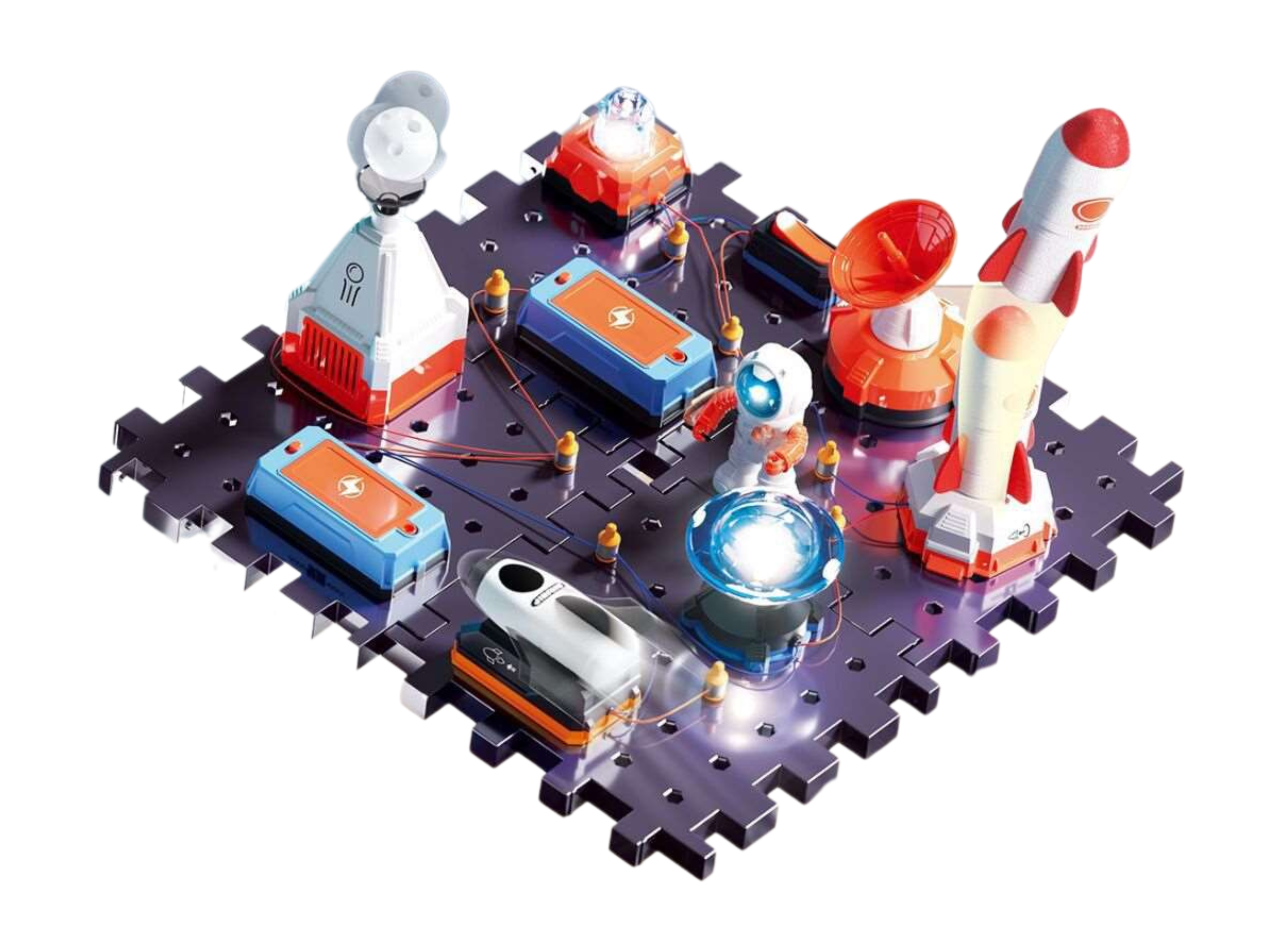 'Bộ đồ chơi lắp ráp điện tử chủ đề không gian dành cho bé từ 6 tuổi trở lên. Bé sẽ tự tay lắp ráp phi hành gia, tên lửa, bệ phóng và kết nối