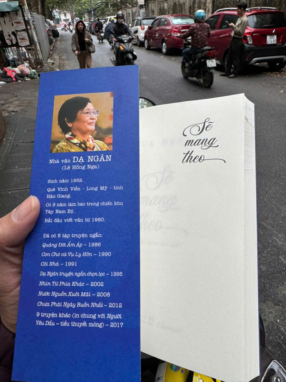 Đây là tinh tuyển với con số 21 trong tổng số hàng trăm truyện đã viết mấy chục năm qua. “Sẽ mang theo” là truyện viết 2020, cuối cùng, cái duyên thời gian ngẫu nhiên khi tôi đinh ninh sẽ không viết truyện ngắn nữa. Tôi mãn nguyện với việc chọn này và mời gọi bạn đọc và rằng, rằng nhất định tôi cũng sẽ mang theo – niềm vui nỗi buồn và vinh hạnh của một đời viết.” (Dạ Ngân)