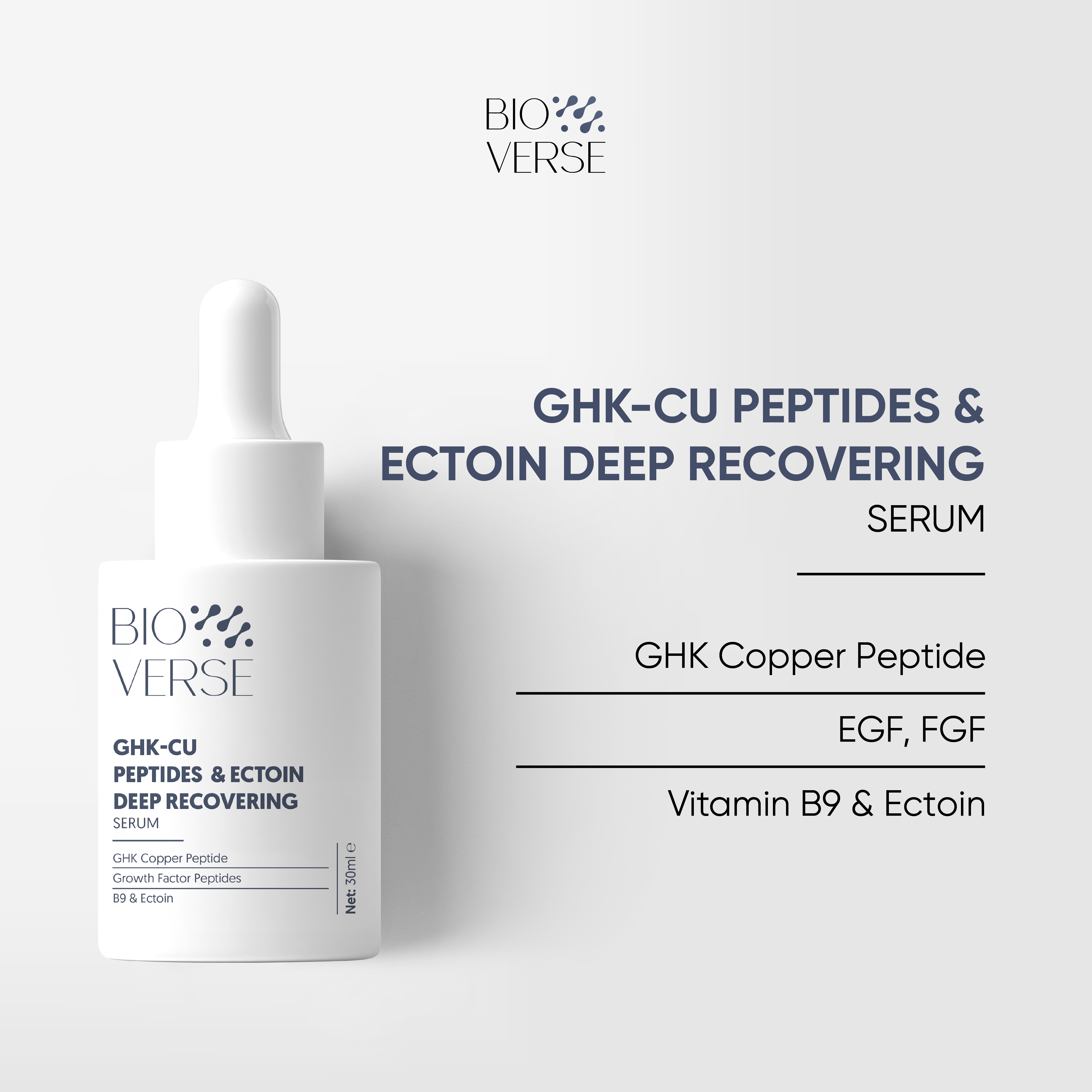 Serum Đồng Peptides tăng sừng khỏe & phục hồi da Bioverse GHK-Cu Peptides & Ectoin Deep Recovering Serum