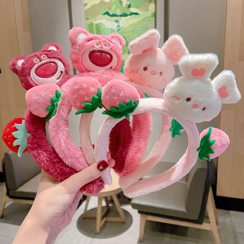 -Set 2 băng đô gấu dâu , tai thỏ phần thân cài nhựa dẻo ,bên ngoài bọc vải nhung lông êm ái , có thể điều chỉnh theo kích thước đầu người ,phong cách Hàn Quốc phụ kiện làm đẹp cho phái nữ