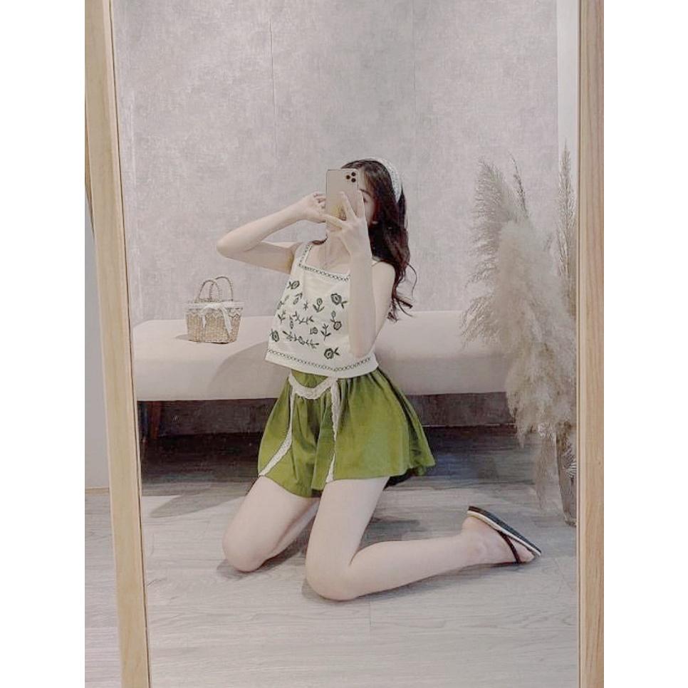 Mua tại TiktokTên: Bộ áo 2 dây, hoạ tiết thêu tay tỉ mỉ Chất liệu: Vải đũi xước tơ cao cấp Thiết kế thoải mái, thuận tiện vận động: