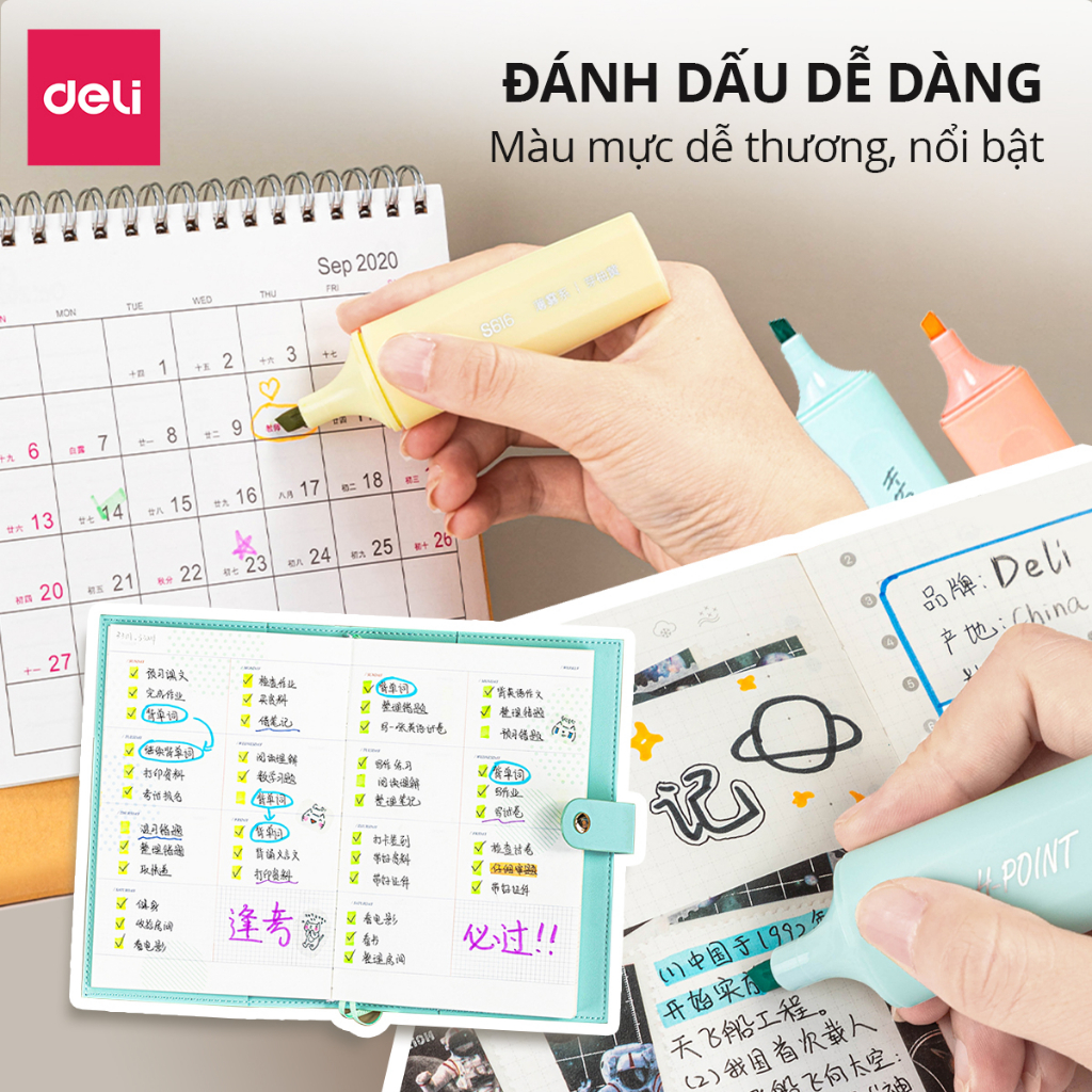 Màu mực tươi sáng hơn Không độc hại Thân bút màu dạ quang trong suốt Sử dụng được cho giấy thường và giấy fax Có thể đánh dấu với khoảng cách hơn 100 m++ Đầu