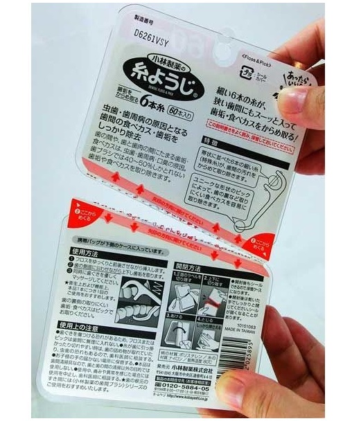 Set 60 chiếc tăm chỉ nha khoa Kobayashi, giúp lấy đi những thức ăn thừa lưu bám ở kẽ răng, chân nướu - nơi mà bàn chải đánh răng không thể chạm đến được - nội địa Nhật Bản