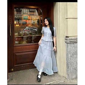 ღ THÔNG TIN SẢN PHẨM: Tên sản phẩm: Set áo voan xanh váy trắng Chất liệu: chất taffta - gân ý Chi tiết sản phẩm: không lót Thông số size: S,