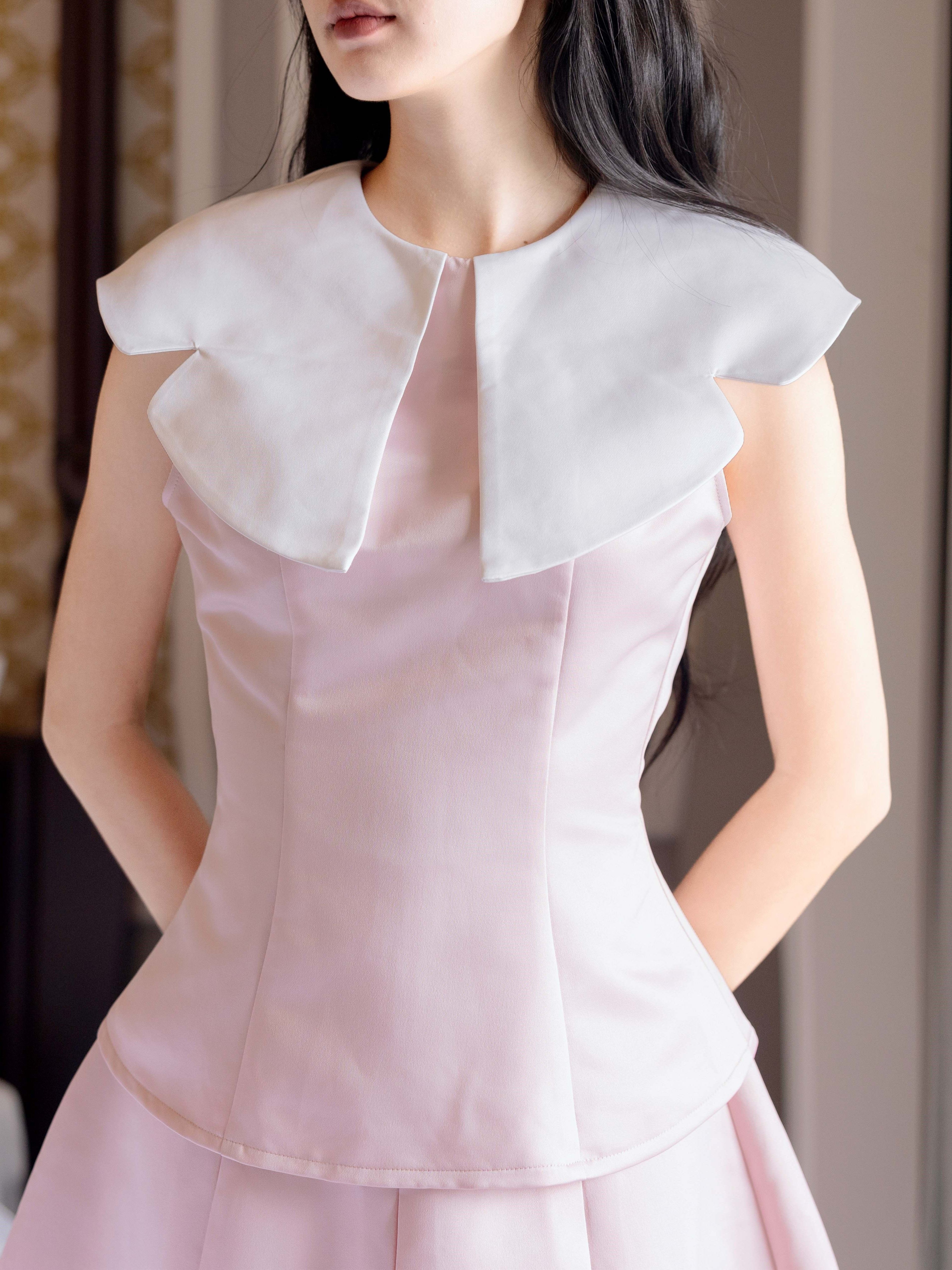 ღ THÔNG TIN SẢN PHẨM: Tên sản phẩm: Set áo váy hồng cổ phối trắng Chất liệu: Chất gấm trơn Chi tiết sản phẩm: không lót, nắp túi giả Thông số