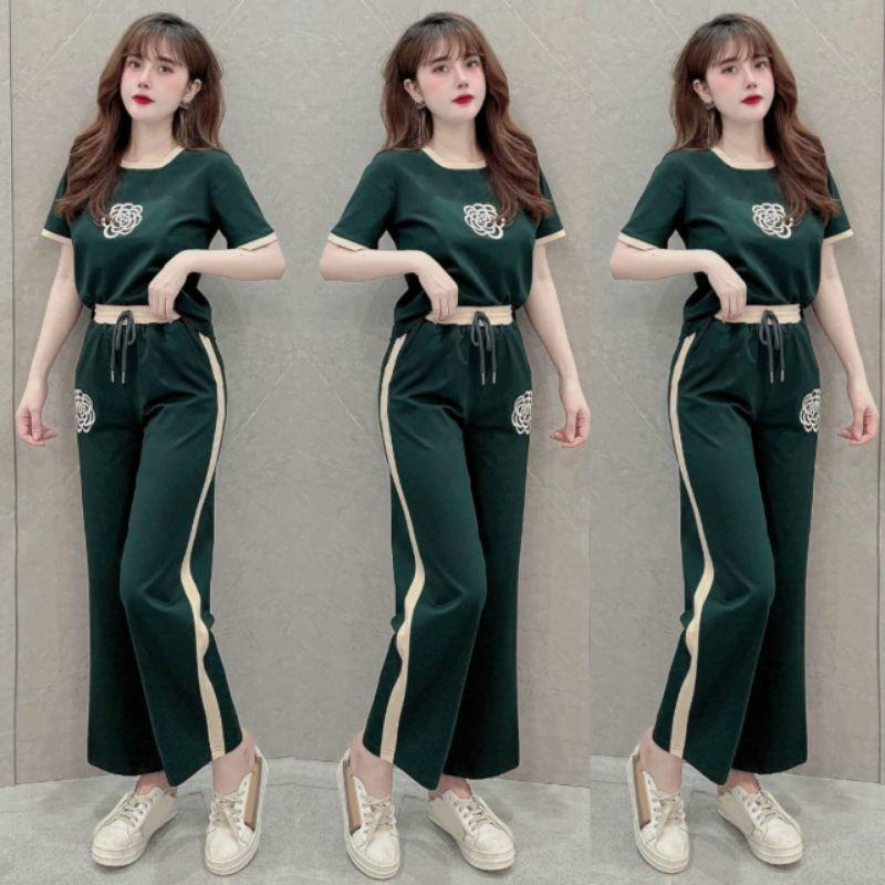 sét bộ đồ nữ quần ống suông rộng phối áo thêu hoa mặc ơ nhà đi chơi duyên dáng mẫu mới siêu hot có bigsize đẹp xuất sắc Màu sắc: y hình Size : M