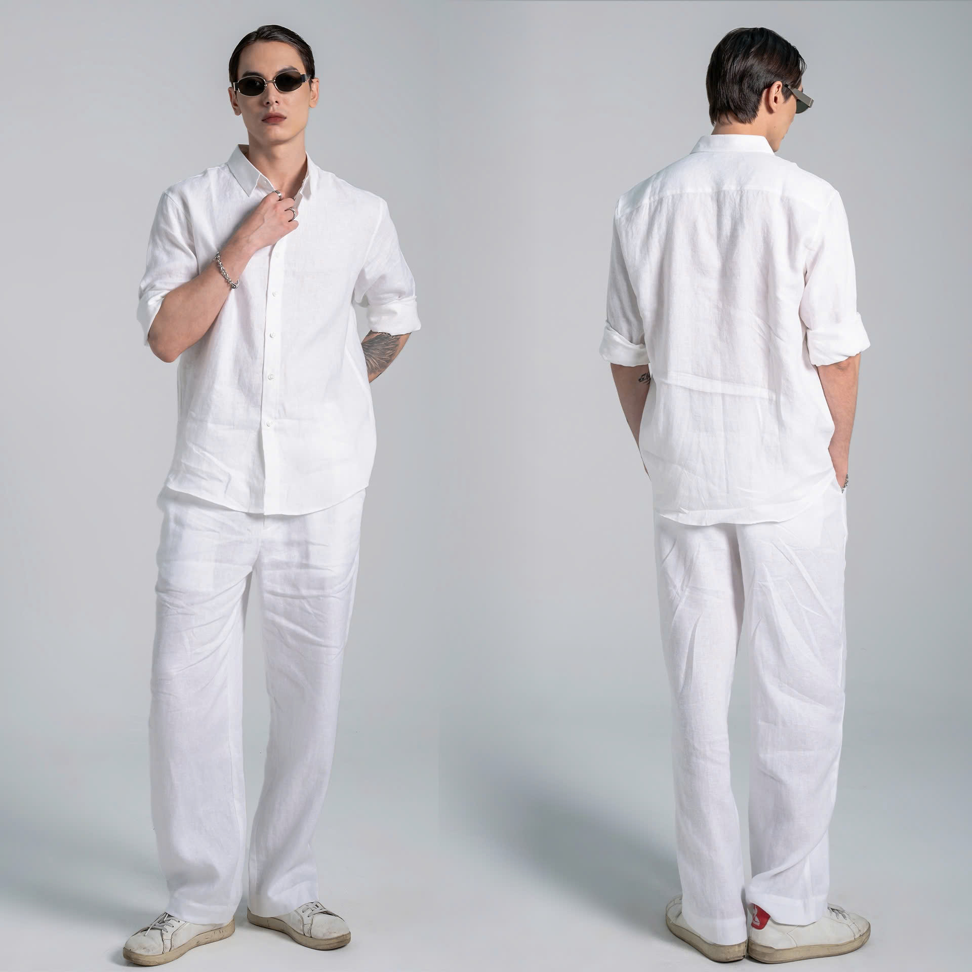 ✨Set Bộ Sơ Mi Nam Basic Áo Dài Tay Mix Quần Suông Ống Rộng Vải Linen Sợi Tự Nhiên Mát Mẻ
