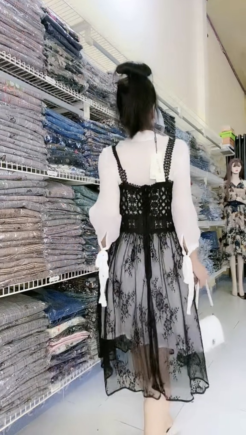 Đầm yếm và áo form dài nguyên set Mã: SDLCG001 Màu: Trắng + Đen Chất liệu: Linen, sợi bông thiên nhiên mịn mát, bền Họa tiết: Thêu