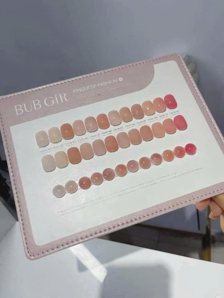 - Tặng kèm bảng màu BUBGIR cao cấpKhi mua set sơn gel BUBGIR 12 màu, khách hàng sẽ được tặng kèm bảng màu cao cấp. Bảng màu này giúp người dùng dễ dàng lựa chọn màu sắc yêu thích và thử nghiệm các phong cách khác nhau mà không cần phải mở từng chai sơn.
