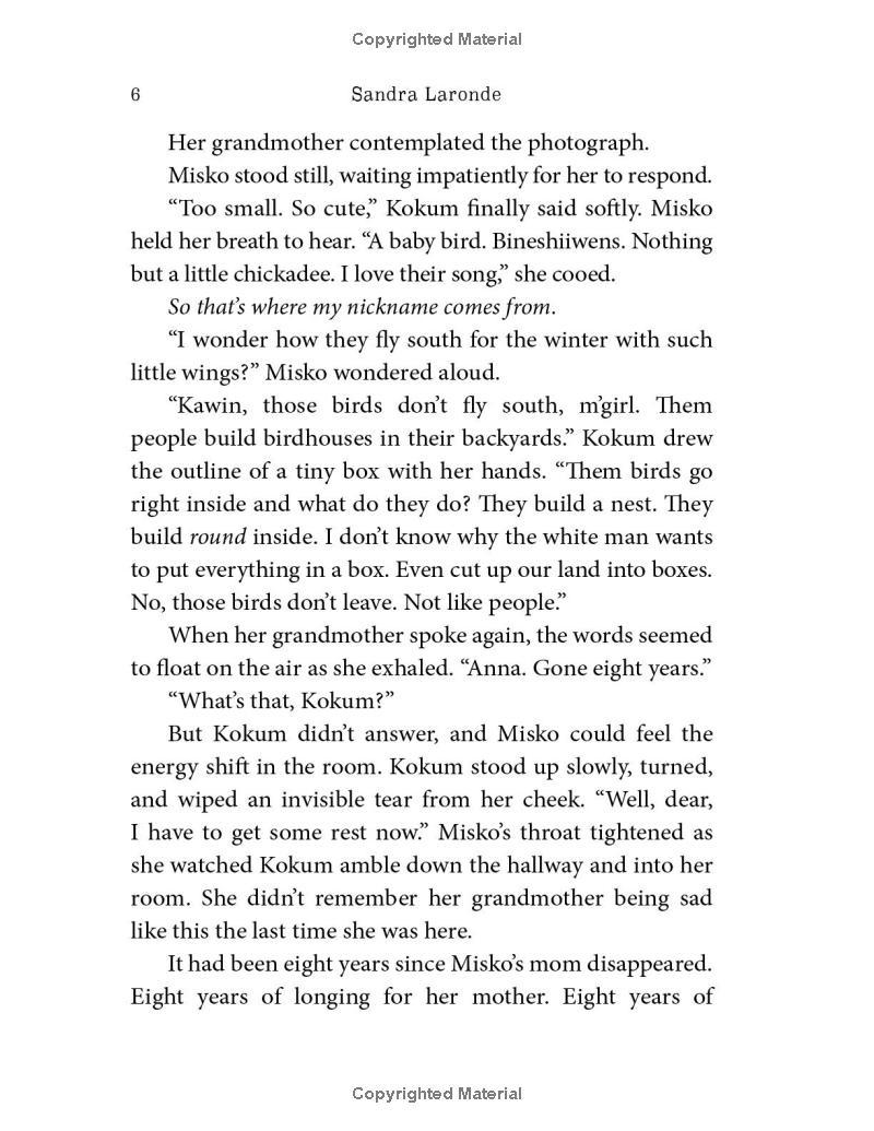 The last thing that twelve-year-old Misko wants to do is to move away from the city to spend time on the rez with her grandmother. And yet she feels strangely compelled to go, drawn by a pull she feels in her dreams. Maybe she can finally find out what happened to her mother, who mysteriously disappeared when Misko was four years old.