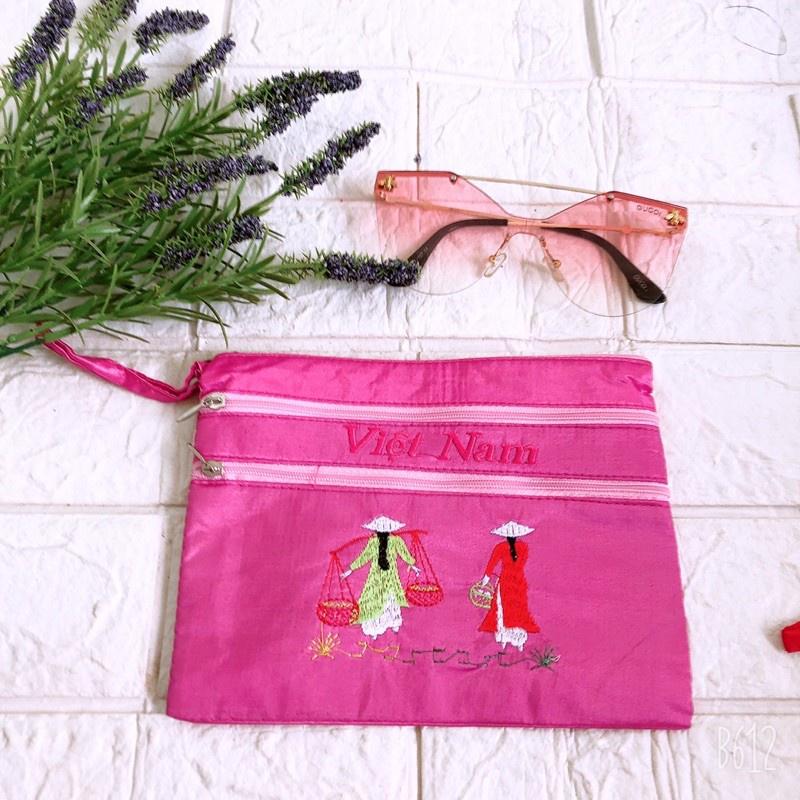 ✨(Siêu Sale) Ví lụa thêu cô gái Việt Nam