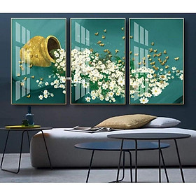 Xưởng tranh Family Store xả sốc bộ bộ ba tranh tráng gương cao cấp hoa cúc trắng nhỏ đẹp không tì vết mang lại cho gia đình bạn một không gian độc đáo nghệ thuật, thích hợp treo phòng khách, phòng ngủ, phòng bếp hoặc làm quà tặng