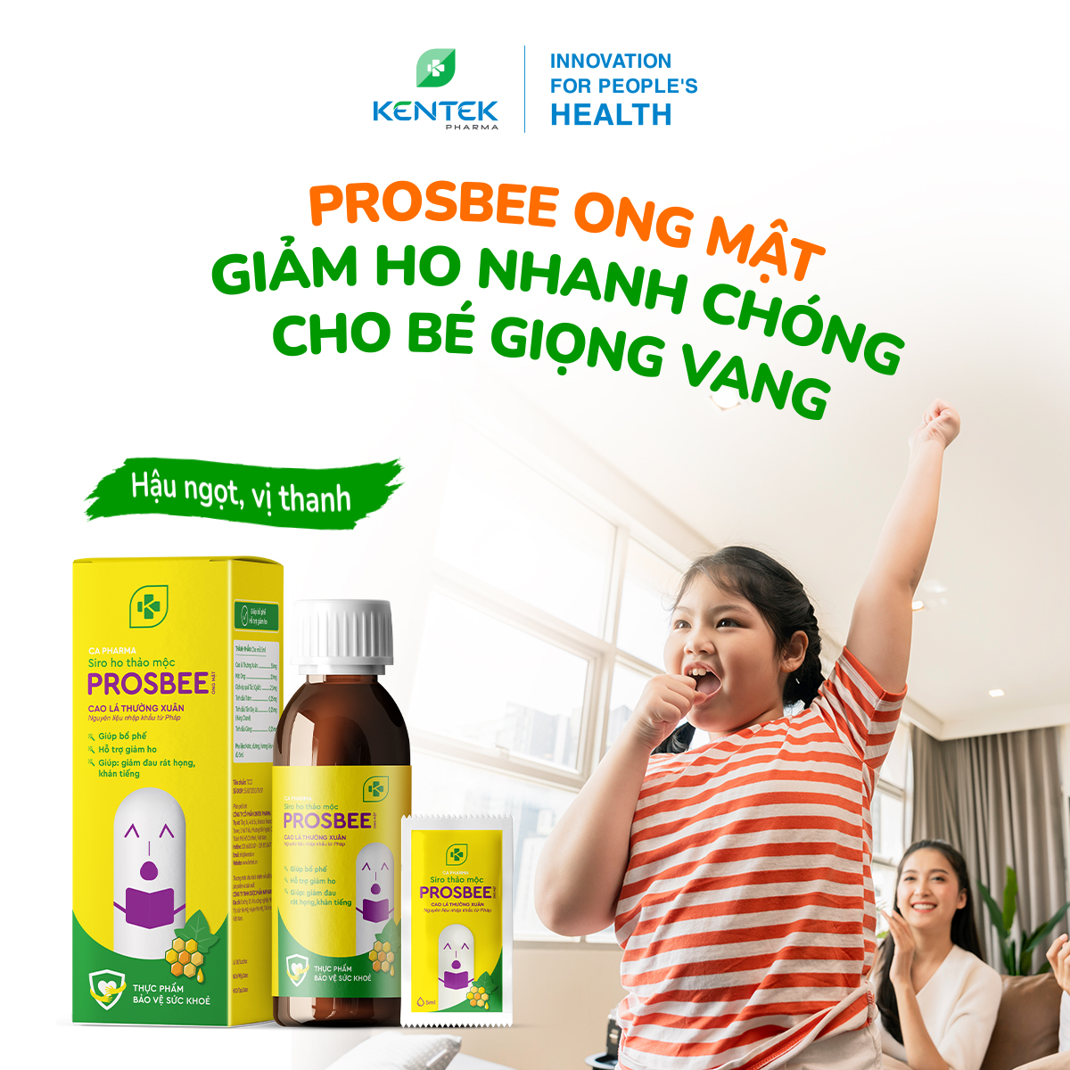 ✨Siro ho thảo dược bổ phế, giảm ho dành cho trẻ em PROSBEE Ong Mật | Kentek Pharma | Chai 100ml