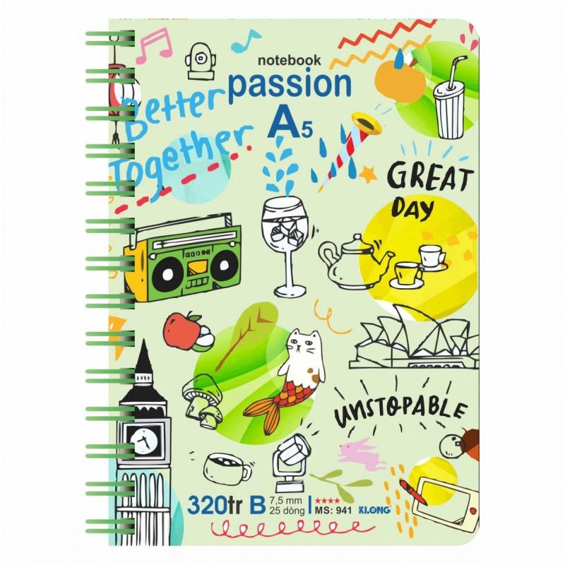 Sổ A5 200 trang kẻ ngang MS 940 gáy lò xo kép chắc chắn KLong, sổ tay