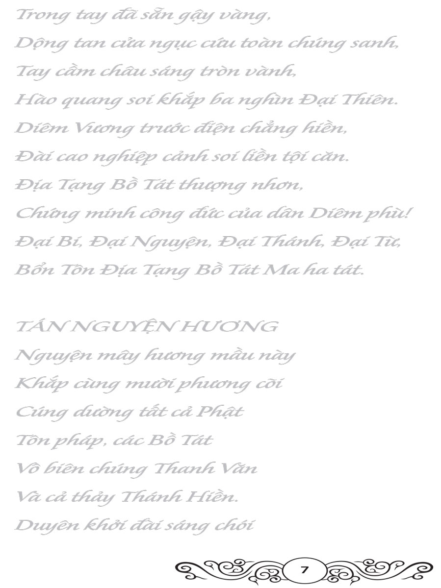 Mỗi bài trong quyển Sám Pháp Địa Xúc này giống như một buổi tâm tình với đức Thế Tôn. Ta có thể chọn một bài thích hợp với hoàn cảnh của ta mà thực tập.