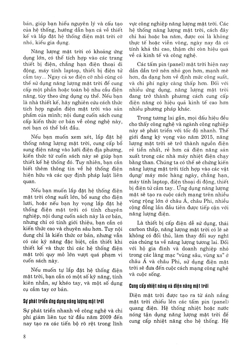 Nội dung cuốn sách này cung cấp đầy đủ kiến thức đủ để bạn đọc có thể thiết kế và lắp đặt hệ thống điện mặt trời quy mô hộ gia đình. Giá thành các