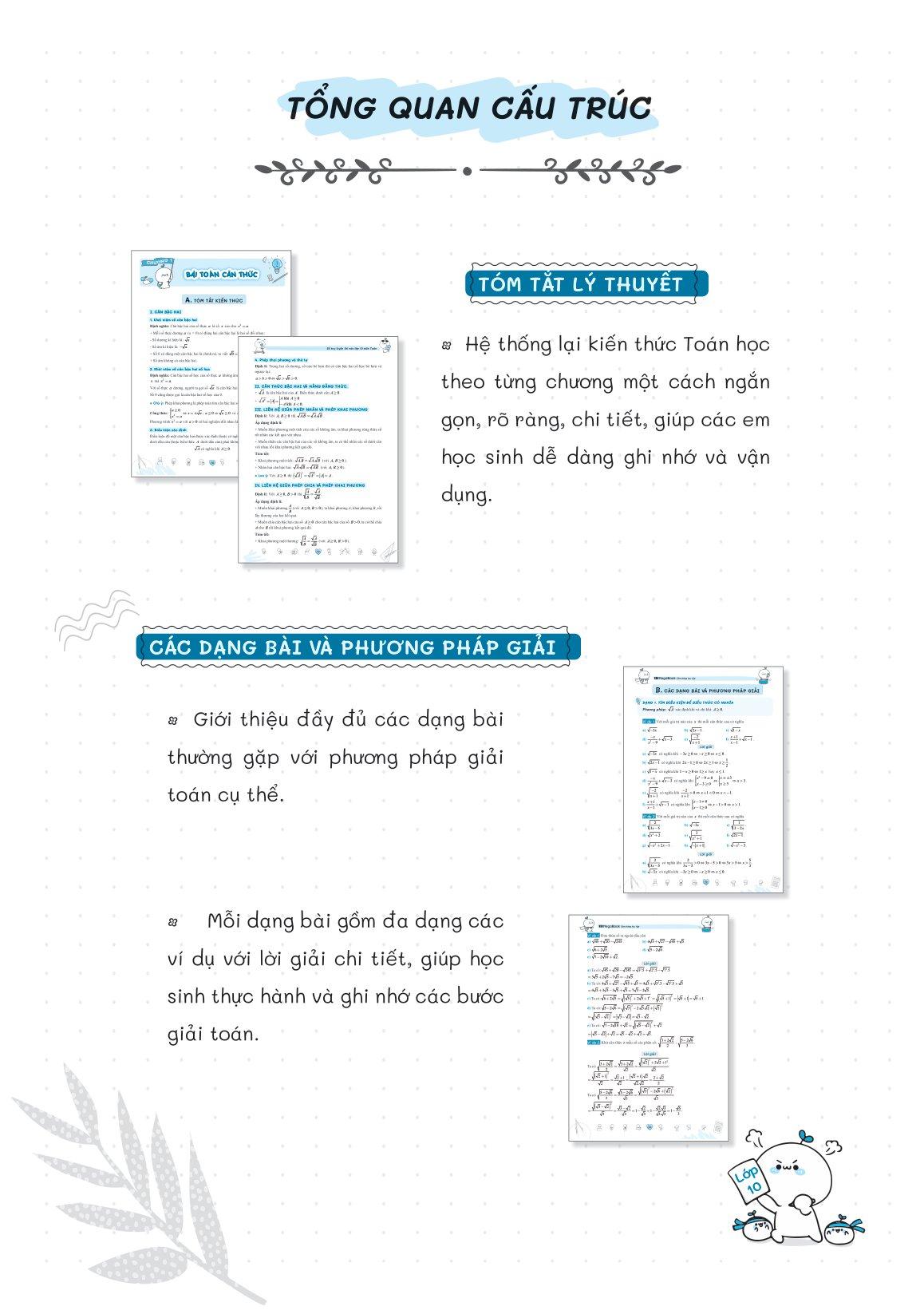 Sổ tay cung cấp đầy đủ các dạng bài thường gặp trong kỳ thi vào lớp 10 môn toán. Mỗi dạng bài đi kèm với phương pháp giải cụ thể, giúp bạn hiểu rõ cách giải từng bài tập và áp dụng vào thực hành. Không còn loay hoay mất thời gian tìm kiếm lời giải, bạn sẽ có công thức cho mọi dạng bài xuất hiện trong đề thi.