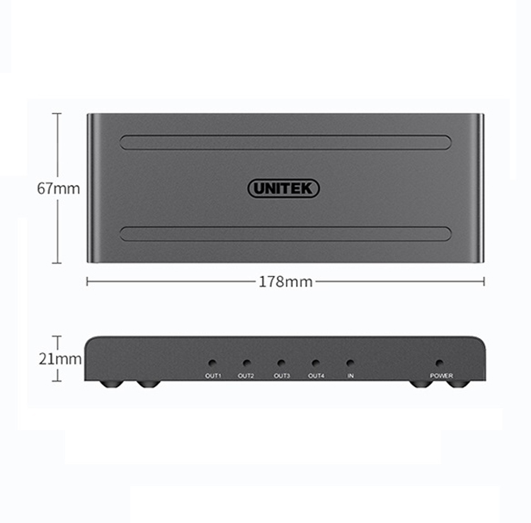 MULTI HDMI 1-4 4K UNITEK - Cổng vào : 1 HDMI - Cổng ra : 4 HDMI - Độ phân giải : 3840x2160 Bộ Chia HDMI 1 vào 4 ra Unitek - Phân phối 1