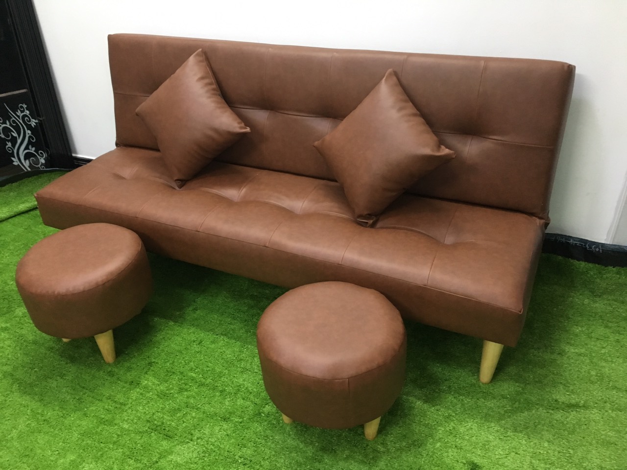 ✨Sofa bed, sofa giường màu nâu và 2 đôn tròn SB16