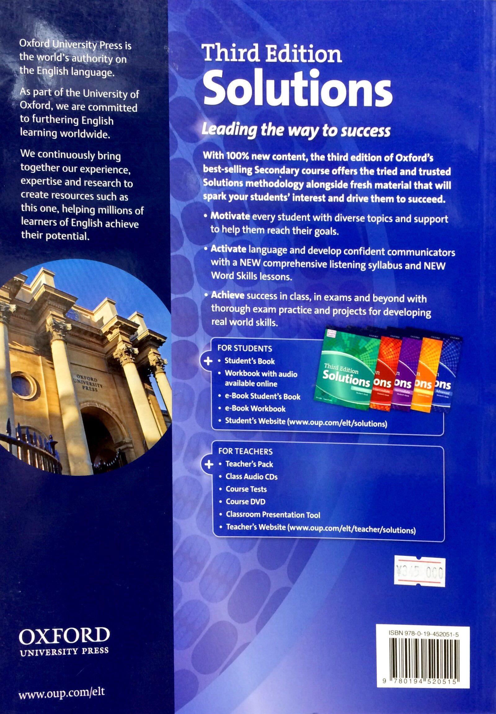 With 100% new content, the third edition of Oxford's best-selling secondary course offers the tried and trusted Solutions methodology alongside fresh and diverse material that will spark your students' interest and drive them to succeed.