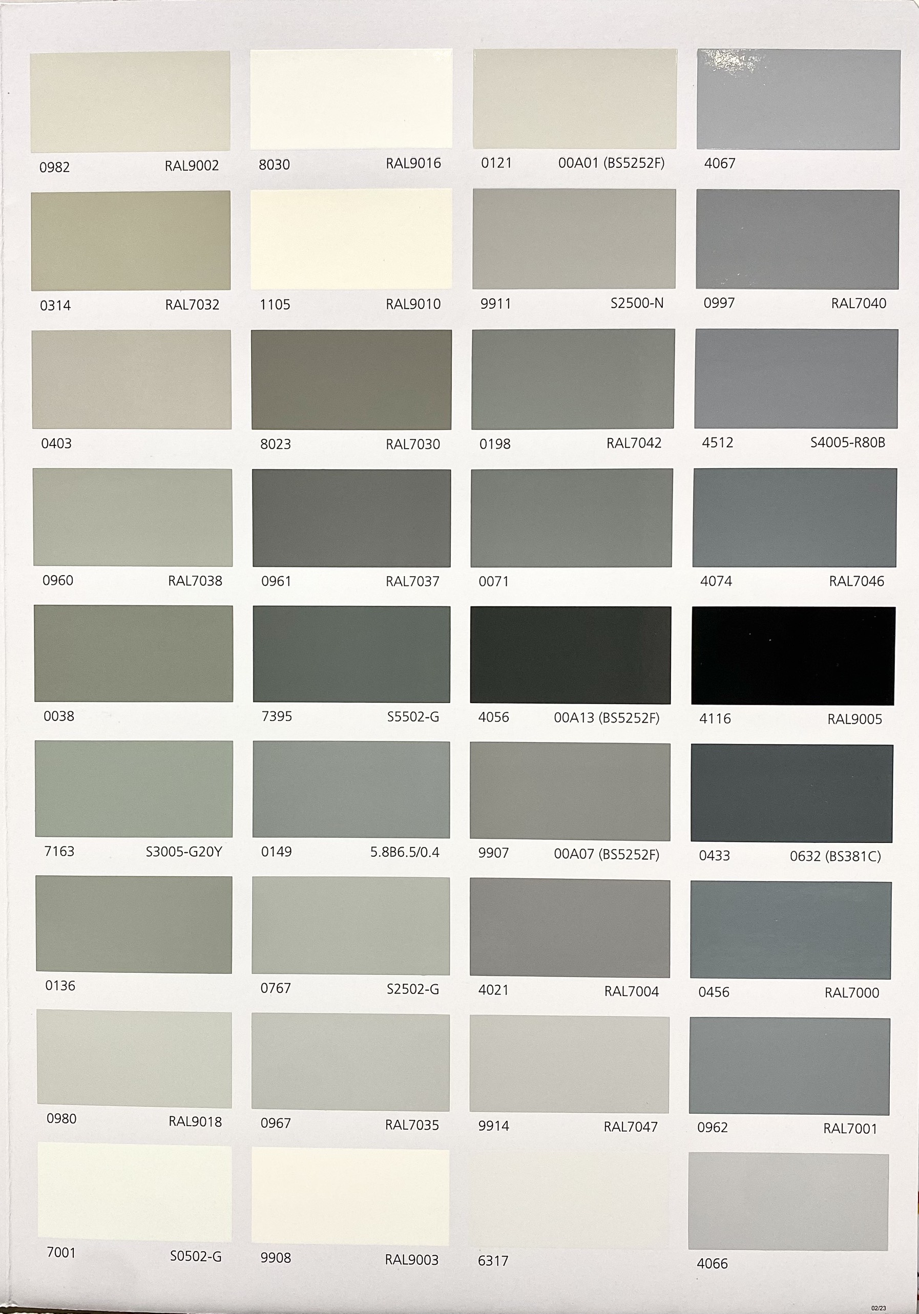 Màu sắc: Nhiều màu theo bảng màu và hệ thống pha sơn công nghiệp tự động (MCI) Ivory White 566, Yellow 414, Orange 436, Yellow 258, Red 926 (Ral 3000), Ral 1004, Red 49, White 0001, Black 0099, Ral 3013, Tomato Red 2079, Ral 2001, Yellow 2, Green 137, Signal Green 7075, Ral 6032, Green 431, Green 437, Blue 139, Blue 599, Blue 129, Grey 38, grey 136, Grey 403, Light grey 967, Ral 7035, grey 433, grey 149, grey 456, ral 7000, ral 5002, ral 5005, ral 6000, ral 6001, ral 6011, ral 1003, ral 1015, ral 3020, ral 8017, ral 9001…