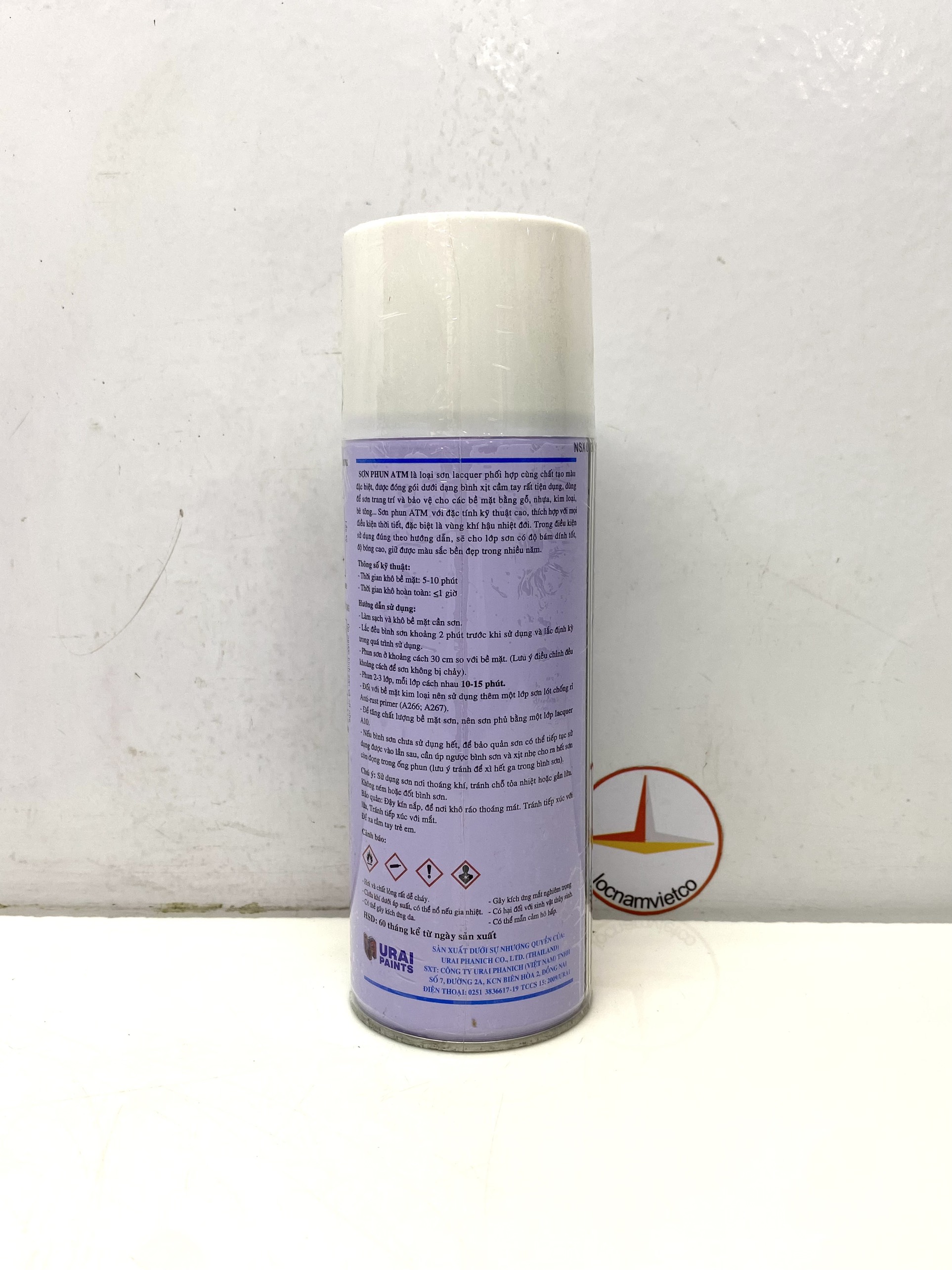 - Nếu bình sơn chưa sử dụng hết, để bảo quản sơn có thể tiếp tục sử dụng vào lần sau, cần úp ngược bình và xịt nhẹ cho ra hết sơn còn đọng trong ống phun (lưu ý tránh để xì hết gas trong bình sơn) Chú ý:Sử dụng sơn nơi thoáng khí, tránh chỗ tỏa nhiệt hoặc gần lửa. Bảo quản sơn nơi có nhiệt độ dưới 40 độ C. Không ném hoặc đốt bình sơn. Bảo quản: Đậy kín nắp, để nơi khô ráo thoáng mát. Để xa tầm tay trẻ em và tránh tiếp xúc với mắt. HSD: 60 tháng kể từ ngày sản xuất. Sản phẩm được phân phối bởi: Công ty TNHH Lộc Nam Việt 1933 QL51, Phước Tân, Biên Hòa, Đồng Nai 0948 79 5588