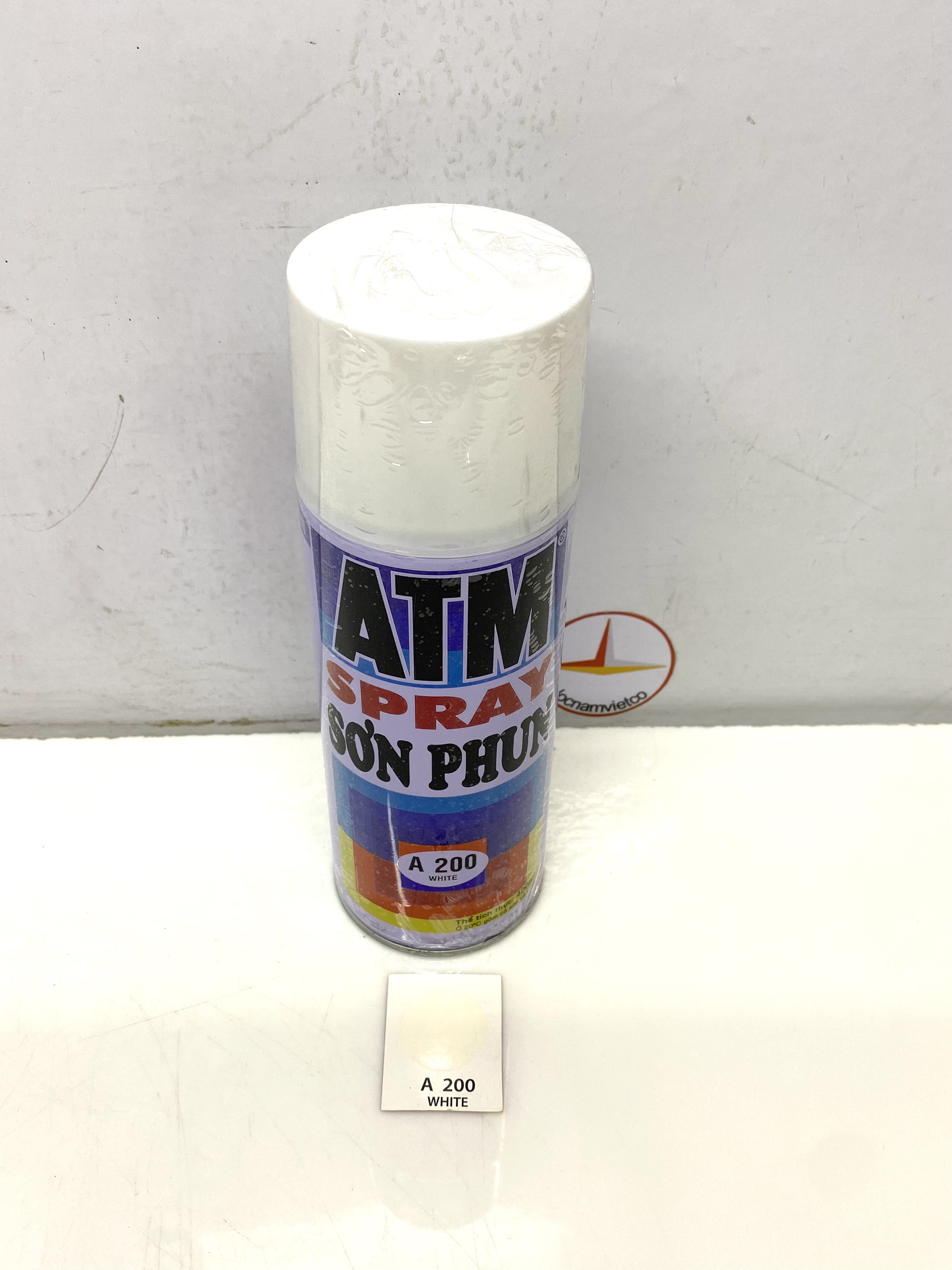 Mua tại TiktokSơn xịt màu trắng ATM A200 SƠN PHUN “ATM” ACRYLIC: Đặc chế từ hỗn hợp nhựa N/C và ACRYLIC, được đóng gói dưới dạng bình xịt cầm tay rất tiện dụng, dùng sơn để trang trí cho các bề mặt bằng gỗ và kim loại như: đồ gia dụng, bàn, ghế, đồ chơi trẻ em, xe đạp, xe máy