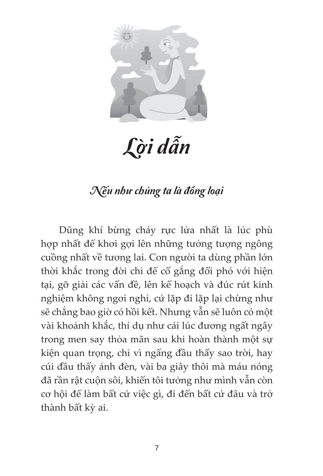 Cuốn sách này dành cho những người vẫn nghĩ cuộc sống tràn đầy hy vọng. Những người này cũng giống như tác giả trong quá khứ và hiện tại, sống trong sự chờ đợi mỗi ngày, chờ đợi những điều bất ngờ, đánh cược vào ngày mai, tin rằng bản thân vẫn đang sống trước thời kỳ đỉnh cao của m.ình. Tất cả những ý tưởng và câu chuyện được viết trong cuốn sách này, bất kể vui mừng hay thất vọng đều đã được tác giả trải nghiệm qua và mang ra đánh đổi. Trong quá trình kể lại, chúng ta sẽ thấy rằng dù là ngày nào hay thời điểm nào đi chăng nữa, mọi thứ đều để lại dấu vết, sự liên kết giữa những sợi tơ lớn nhỏ mới dệt nên ý nghĩa của nó trong bức tranh toàn cảnh cuộc sống.