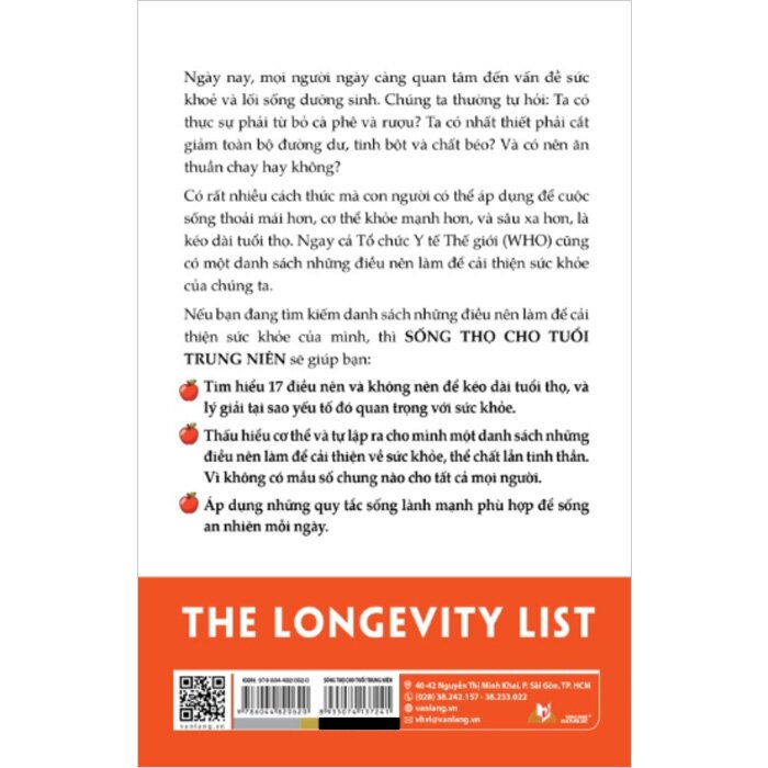 Mua tại TiktokSống Thọ Cho Tuổi Trung Niên Trong nhịp sống hiện đại, ai cũng quan tâm đến sức khỏe và lối sống lành mạnh. Nhưng liệu ta có thực sự cần từ bỏ cà phê, rượu, cắt toàn bộ đường, tinh bột, chất béo hay ăn thuần chay mới sống khỏe, sống lâu? Sống Thọ Cho Tuổi Trung Niên của Giáo sư Merlin Thomas mang đến cái nhìn khoa học, rõ ràng và dễ áp dụng để mỗi người có thể tìm ra lối sống phù hợp. Sách giúp bạn hiểu rõ điều gì nên làm và không nên làm để cải thiện sức khỏe, kéo dài tuổi thọ mà vẫn duy trì cuộc sống thoải mái và an nhiên. Nội dung nổi bật