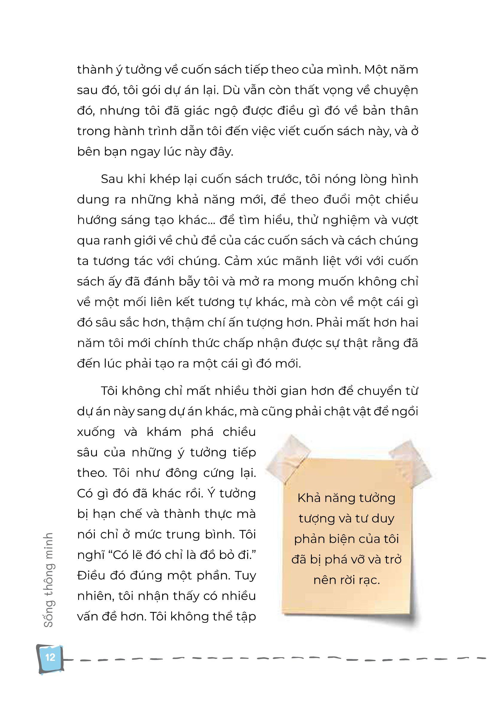 - Nuôi dưỡng sự sáng tạo và trí tưởng tượng thông qua các nghi thức hàng ngày có tác dụng mạnh mẽ và thay đổi cuộc sống Bạn có thể hạnh phúc và thành công nếu sống có ý thức, mục đích rõ ràng và khiến công nghệ phục vụ bạn (không phải ngược lại). Đạt được điều đó không khó như người ta tưởng - đó là làm những việc nhỏ mỗi ngày để xây dựng thói quen tốt, năng suất cao hơn và cuộc sống trọn vẹn hơn. Mục lục Nhận biết Thức tỉnh Giá trị Im lặng Giải phóng Hình dung Đắm chìm Hãy bắt đầu đọc cuốn sách “Sống thông minh” của tác giả Brian Solis để mở ra những cấp độ mới về sự hài lòng, khả năng và niềm đam mê trong bạn. Về tác giả: Brian Solis được công nhận là một trong những nhà lãnh đạo có tư tưởng nổi bật nhất trong đổi mới doanh nghiệp. Là một nhà phân tích kỹ thuật số, nhà nhân chủng học, ông nghiên cứu về công nghệ đột phá và tác động của nó đối với doanh nghiệp và xã hội. Blog của ông, , được xếp hạng là nguồn tài nguyên hàng đầu cung cấp những hiểu biết sâu sắc về tương lai của doanh nghiệp, công nghệ mới và marketing.