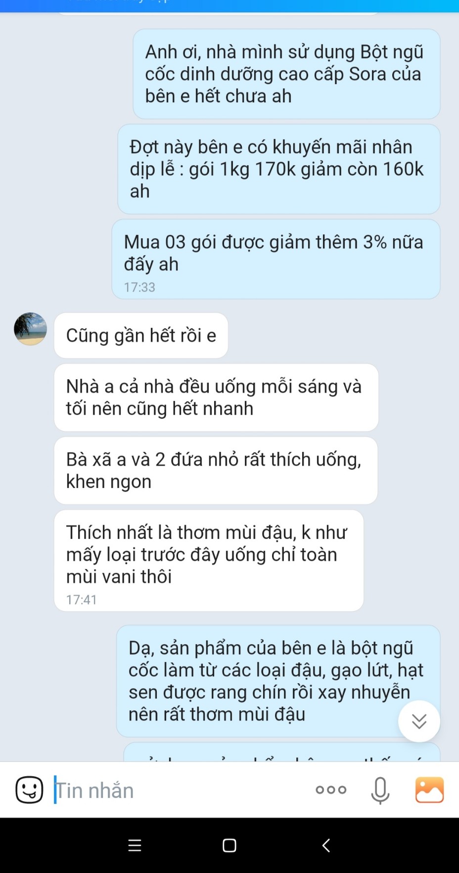 Bột Ngũ Cốc Dinh Dưỡng Cao cấp Sora phù hợp với mọi đối tượng, đặc biệt đối với phụ nữ trước và sau sinh, người già, người táo bón, mất ngủ và trẻ em trên 2 tuổi. Đặc biệt chúng tôi sử dụng các loại đậu ta có nguồn gốc hướng đến hữu cơ, không sử dụng sản phẩm biến đối gen (Non-GMO), đảm bảo không thuốc trừ sâu, không phân hóa học. Hãy yêu thương cơ thể của mình, hãy chăm sóc tim mạch, cân bằng đường huyết, chống oxi hóa, giảm cholosterol, cải thiện vóc dáng, lưu thông máu huyết bằng 02 ly ngũ cốc dinh dưỡng cao cấp Sora mỗi ngày nhé ! HÃY ĐỂ SORA CHĂM SÓC BẠN MỖI NGÀY !!! Thông tin chi tiết: Bột ngũ cốc dinh dưỡng cao cấp Sora 500g, 1kg (túi zip) HSD : 12 tháng.