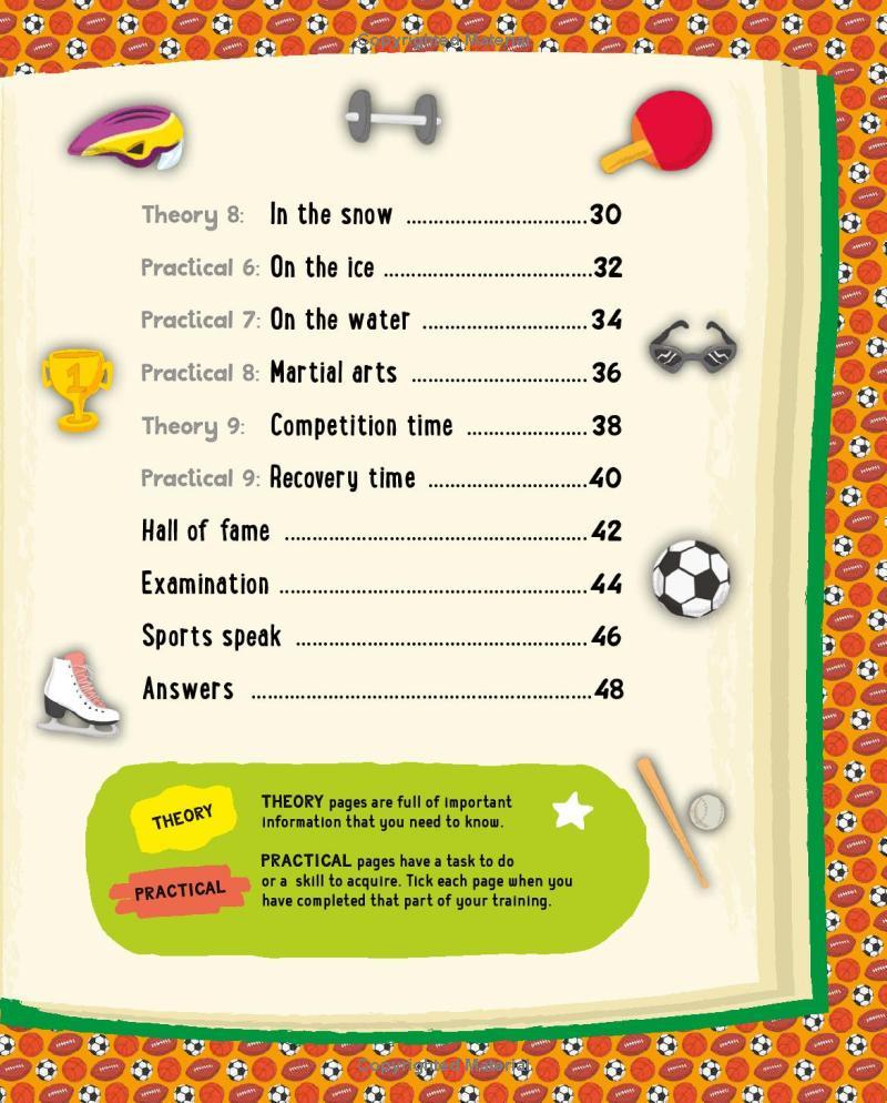 Simple tasks will test your skills and reinforce the information you read in the book. Do you know where your Achilles heel is? Can you check your pulse? How do you train and prepare for an important competition? Take a look inside to find out!