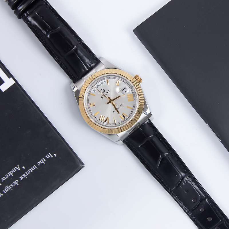 ★Thương hiệu:START★ Đặc điểm: Mặt số nạm kim cương, dạ quang,ngày,Tuần Khả năng chống thấm nước: 50 mét không thấm nước Loại lõi đồng hồ: Lõi đồng hồ cơ học tự động Đường kính vỏ