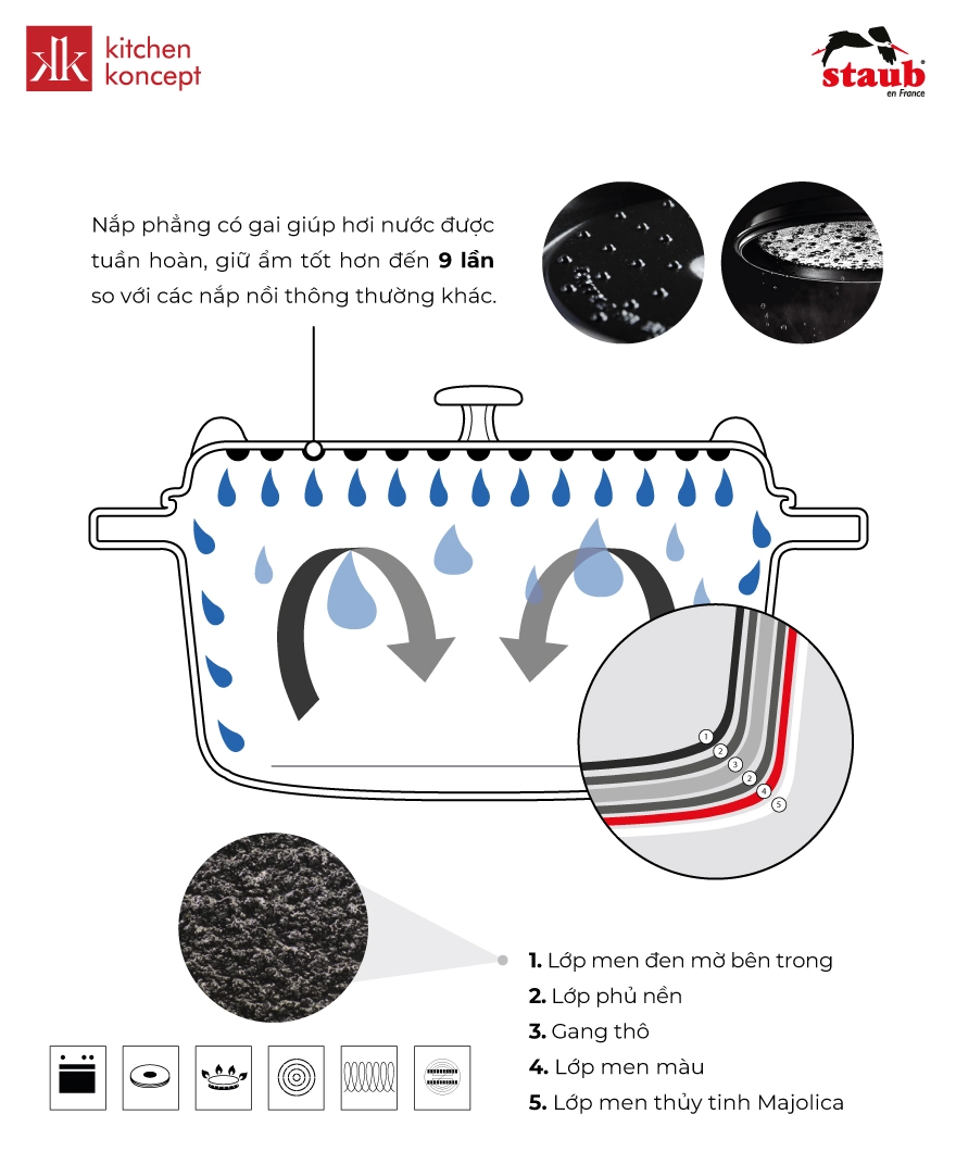 Staub - Nồi oval màu xanh đen được sản xuất hoàn toàn tại Pháp, bằng việc kết hợp giữa các yếu tố truyền thống và hiện đại. Mang đến cho bạn những trải nghiệm tuyệt vời khi chế biến các món ninh, hầm, áp chảo.